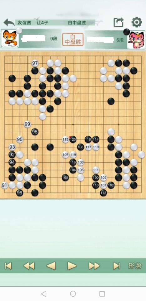棋谱我用手机腾讯围棋分谱如下,180手以后还有些但基本上无关大局略过了。