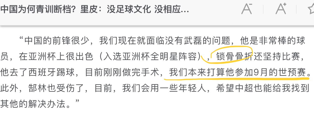 所以他才会得出结论9月份武磊上不了,伤筋动骨100天……并不知道武磊具体发生了些什么,里皮视听受阻。