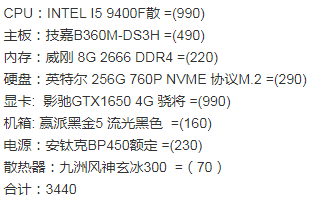 * CPU:i3 【9100f四核散装=】655