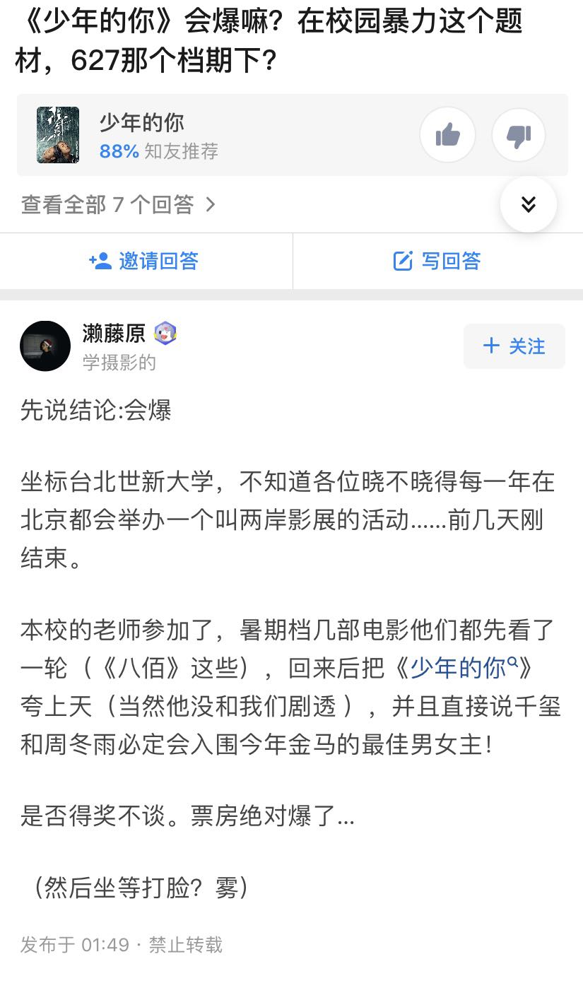 说男女主必入围金马,校园暴力本身是这几年的热门话题,团队没问题,流量也有