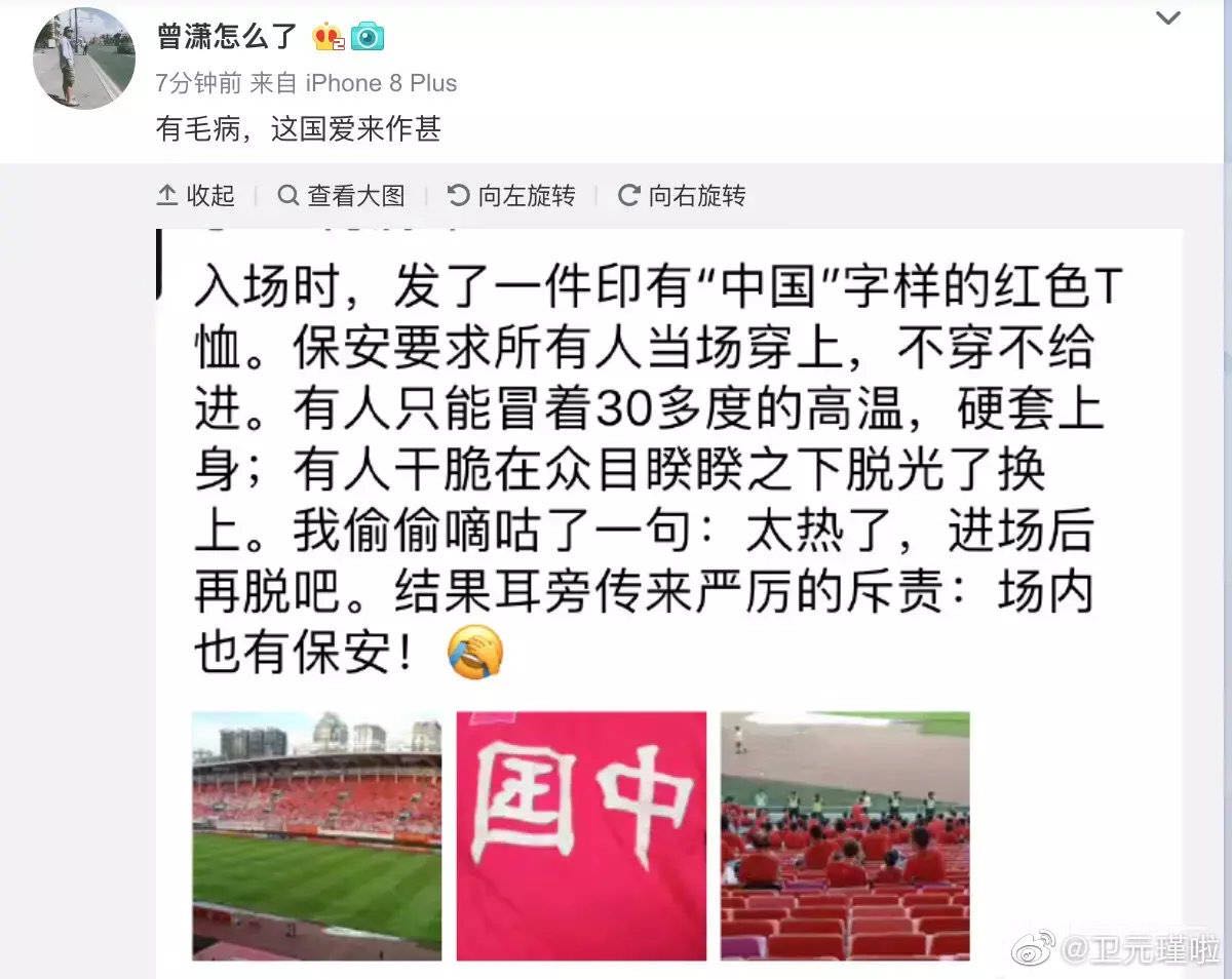 这人傻_逼吧,后面来迟的想领都不够衣服领,还强制穿?节奏带的飞起,见不得中国队有球迷?