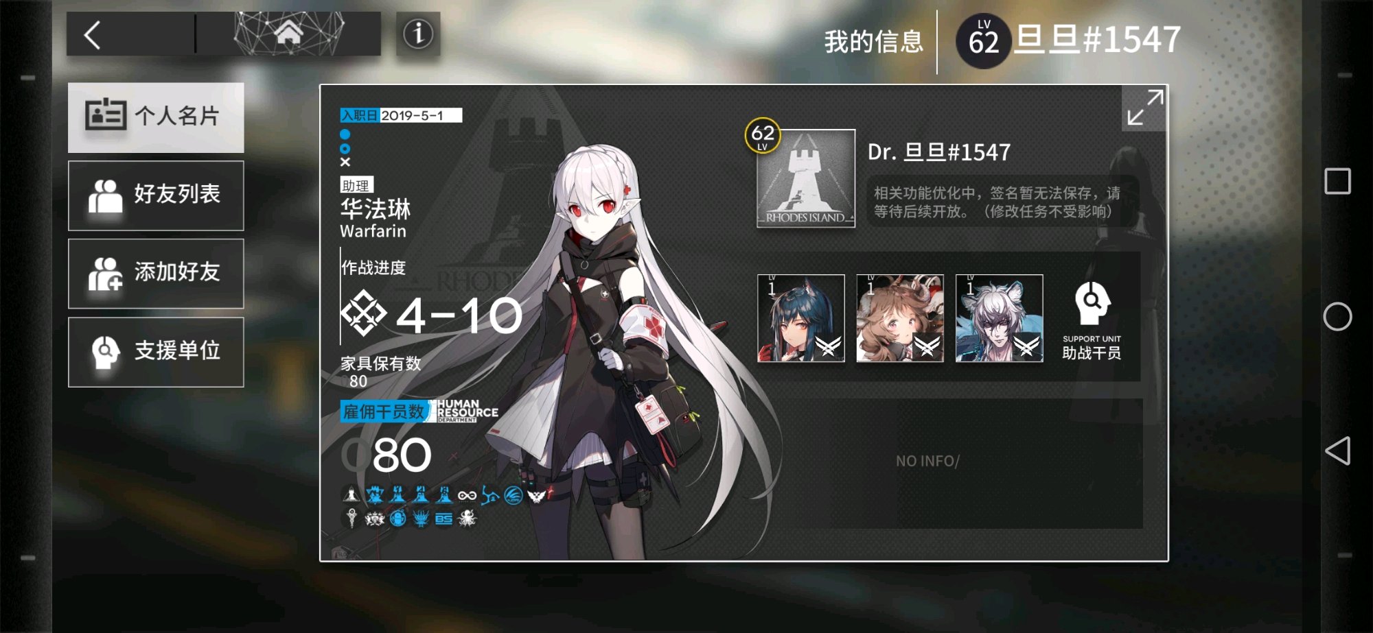 还有一个精一的洁哥,一个1级的斯卡蒂,昨天才抽到赫默和天火,小氪玩家