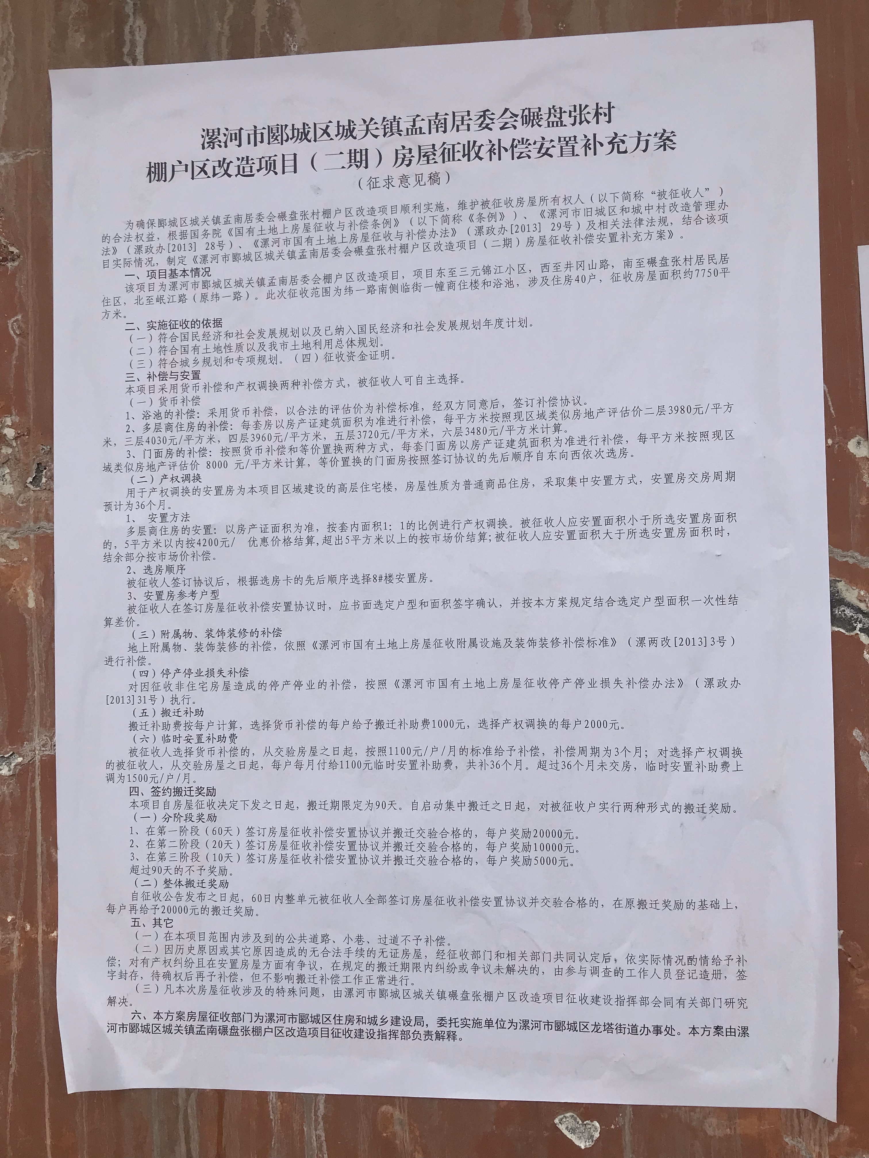 碾盘张村商住楼拆迁补偿方案!