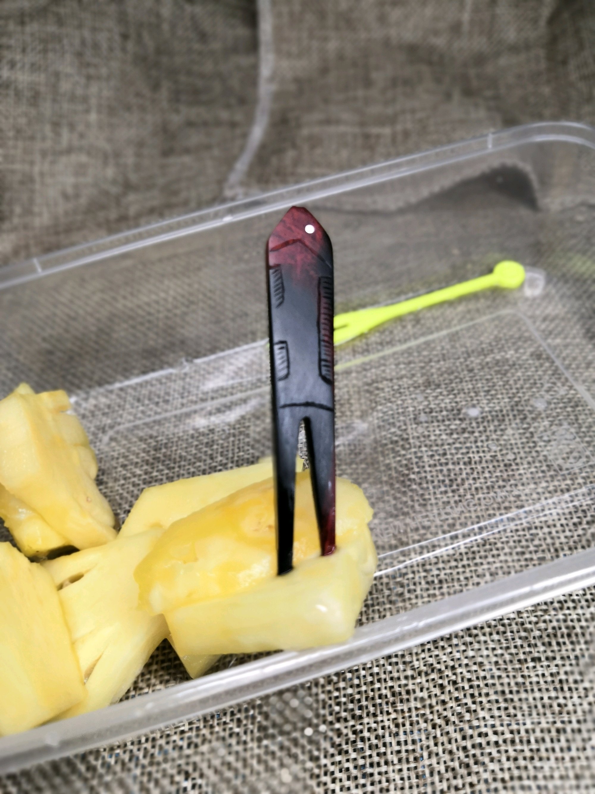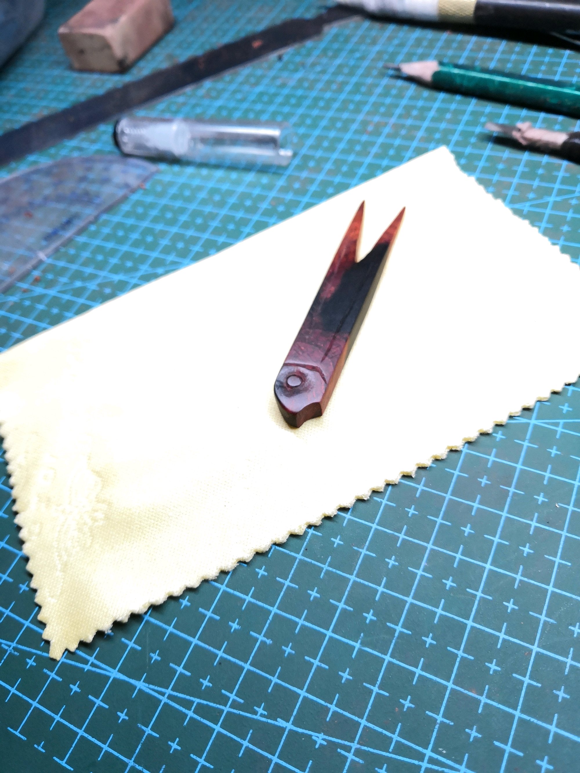 拿大红酸枝书签料,做一个吃水果的小叉子!叉子造型来源于商代玉
