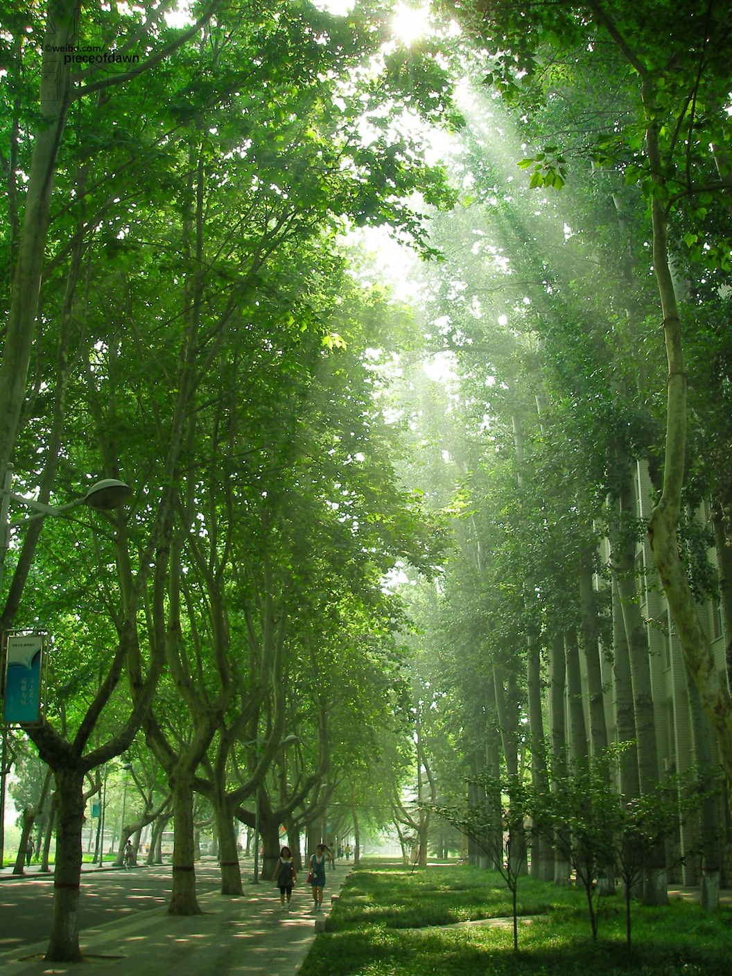拍这张照片时候学校基本都放假了,我们还剩下几节实验课。作为邯郸人,每天在学校上完实验课就回家,第二天一大早再从家里跑到学校上课。有天早上一大早到学校看到阳光从树枝中间穿过的丁达尔现象很漂亮就随手拍了几张。学校早晨经常会有这样的光,平时要多抬头看看