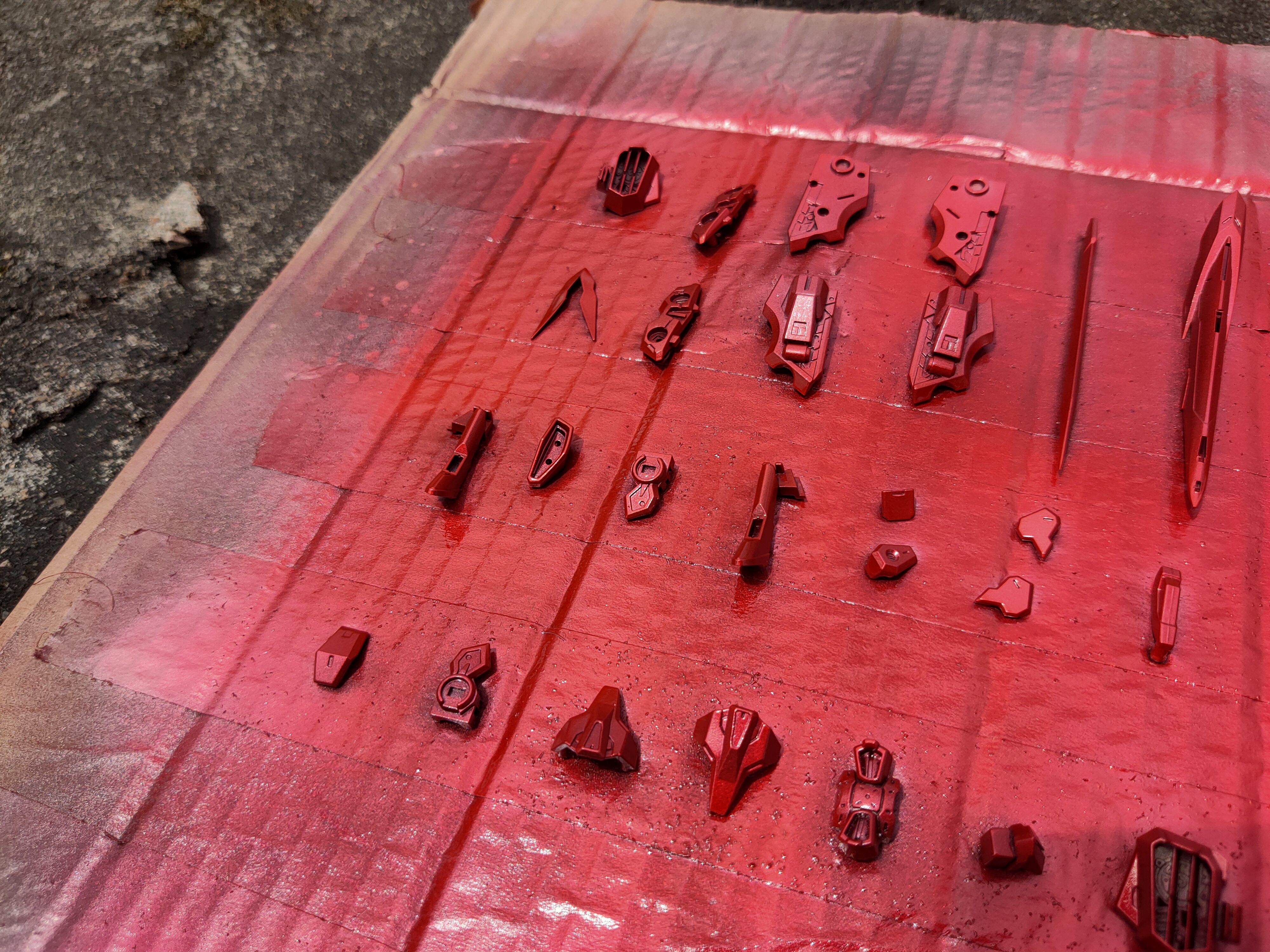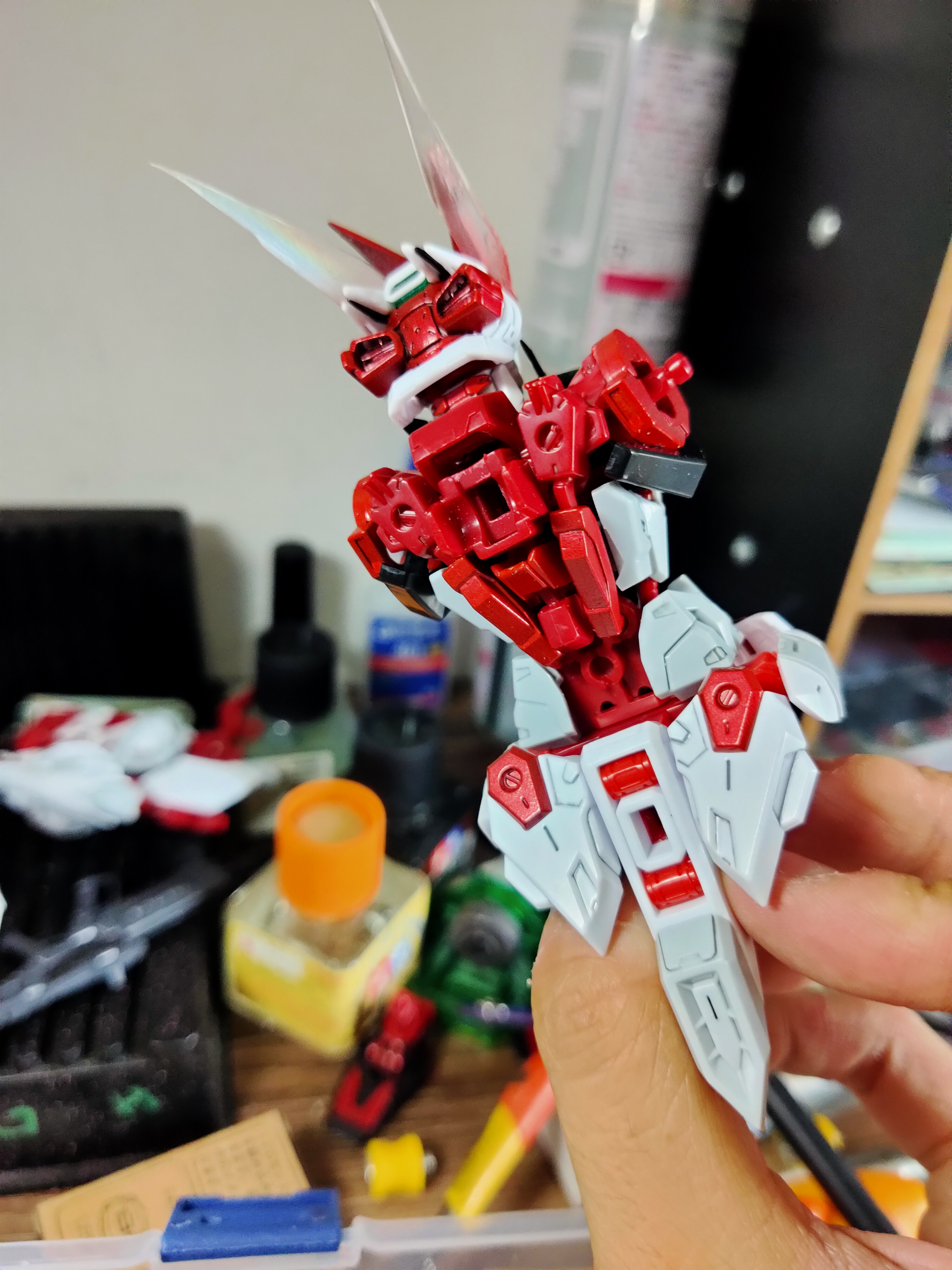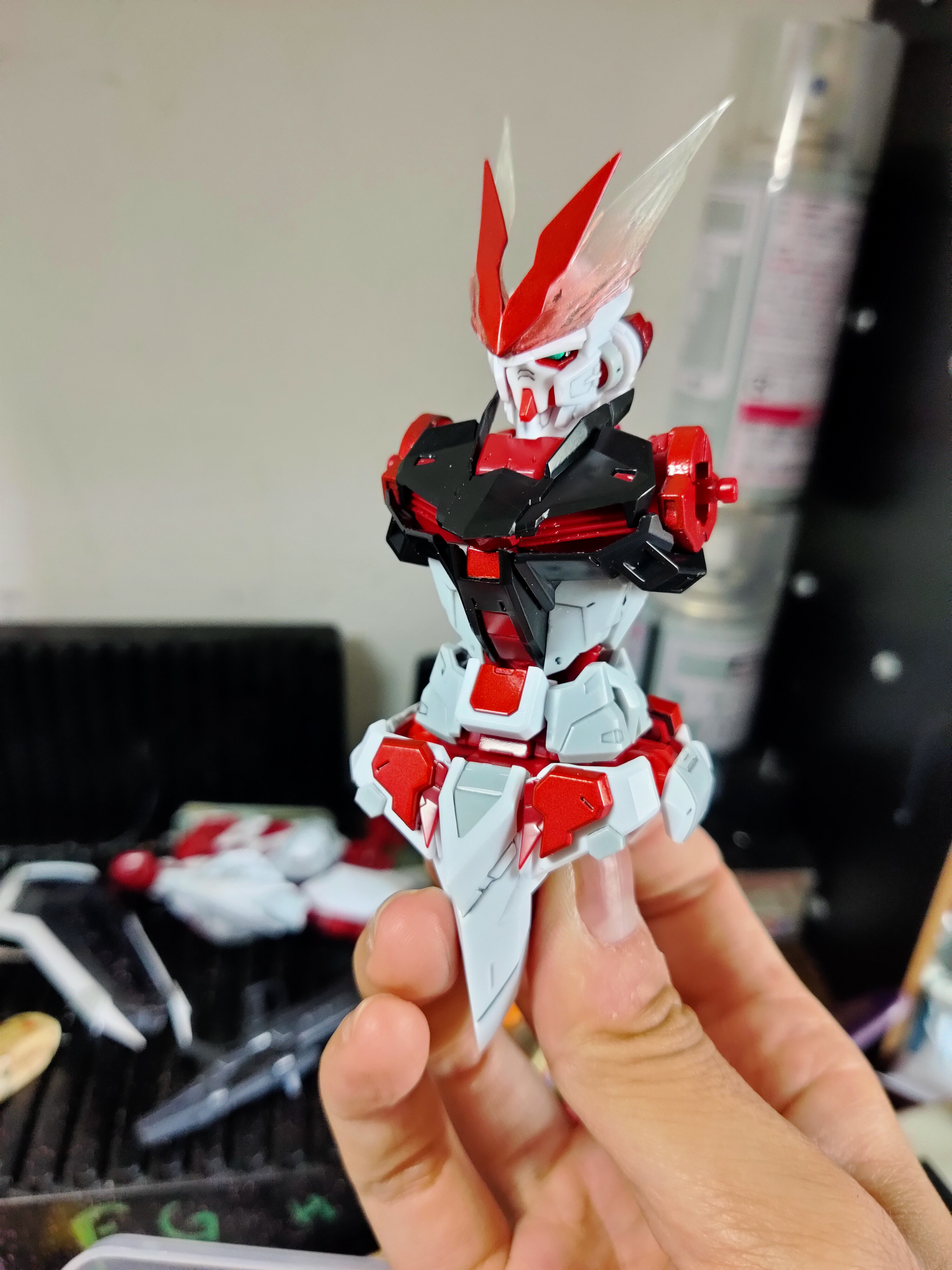 之前经过贴吧各位大佬指点,决定喷涂8806红异端骨架。第一次尝试伪电镀,效果还行,晚上继续更新