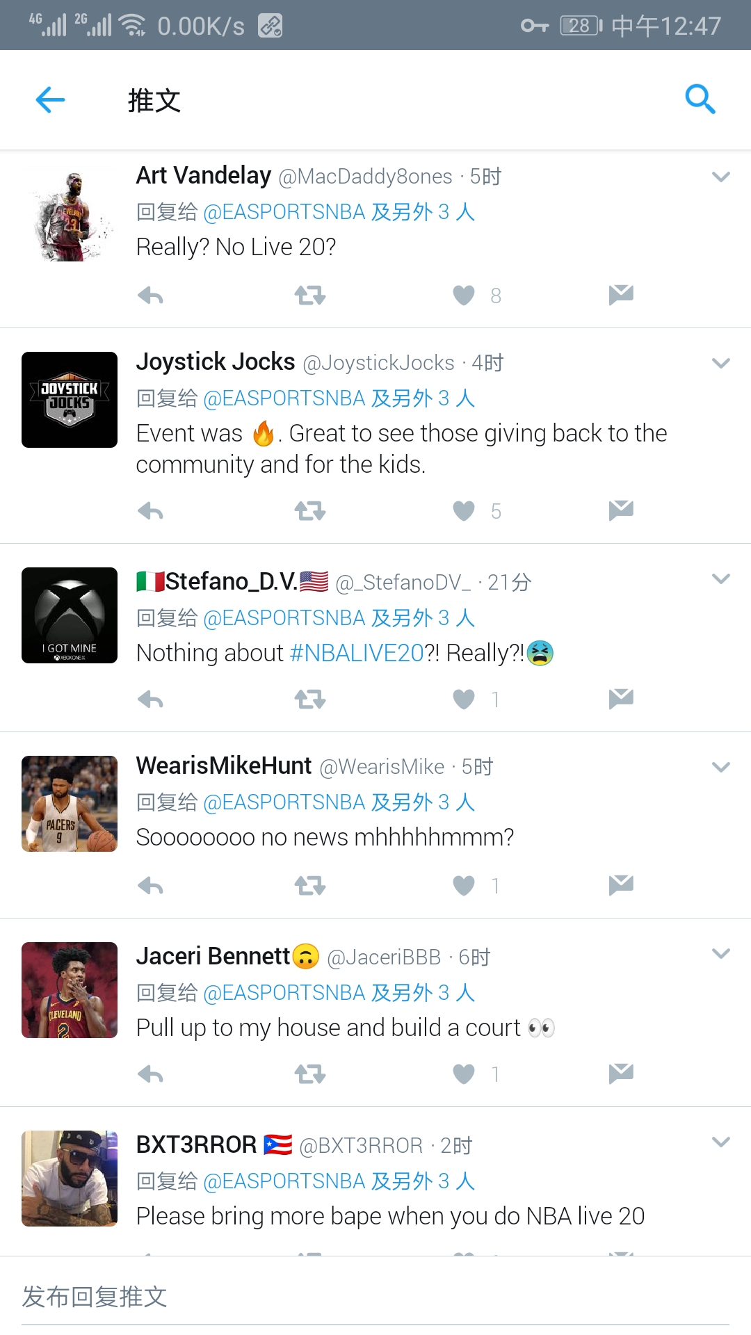 EA目前还没有放出live20的消息,要不是在等2k出手,要不今年就真凉了