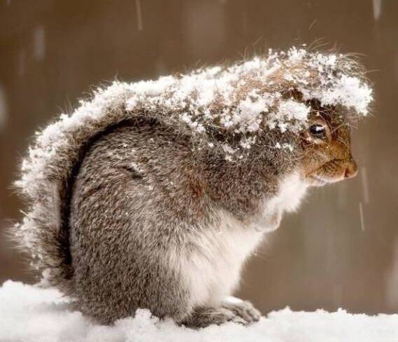 下雨或下雪时,松鼠会用它们的尾巴当做“伞”。