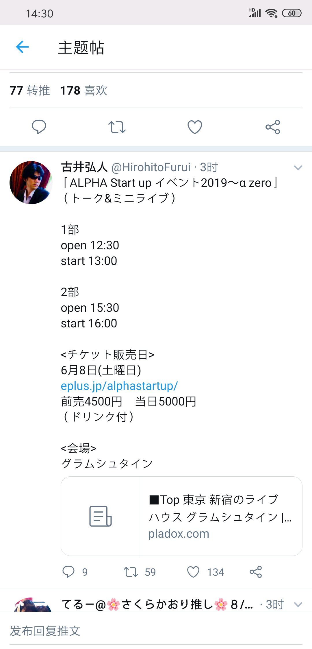 好久没登推特,叔居然赞了我的回复,我的中文回复!