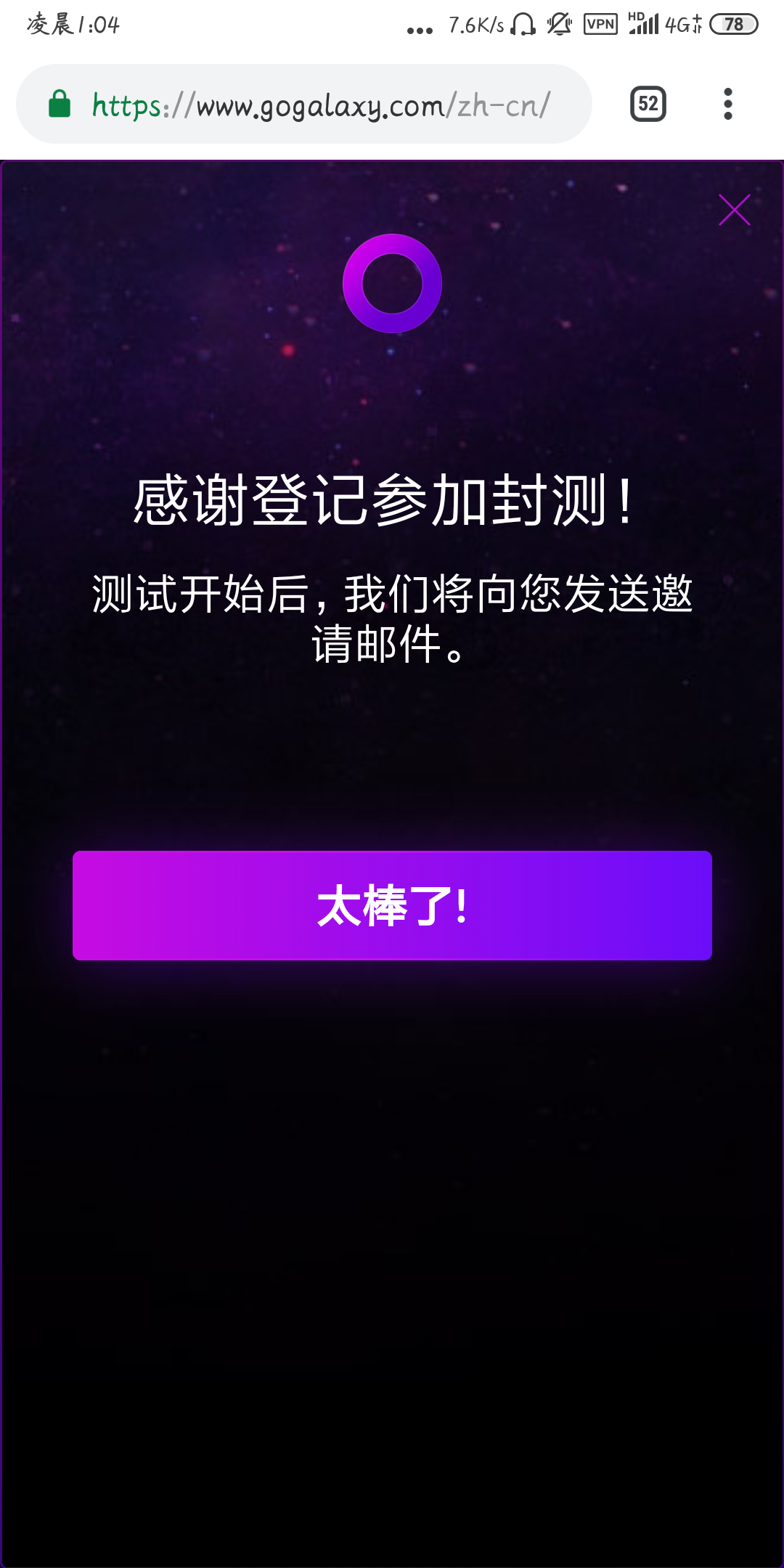 的大包就开了看了一下,听说有gog2.0了,有老哥参加封测吗,我点了没反应哇(电脑浏览器上也没反应)