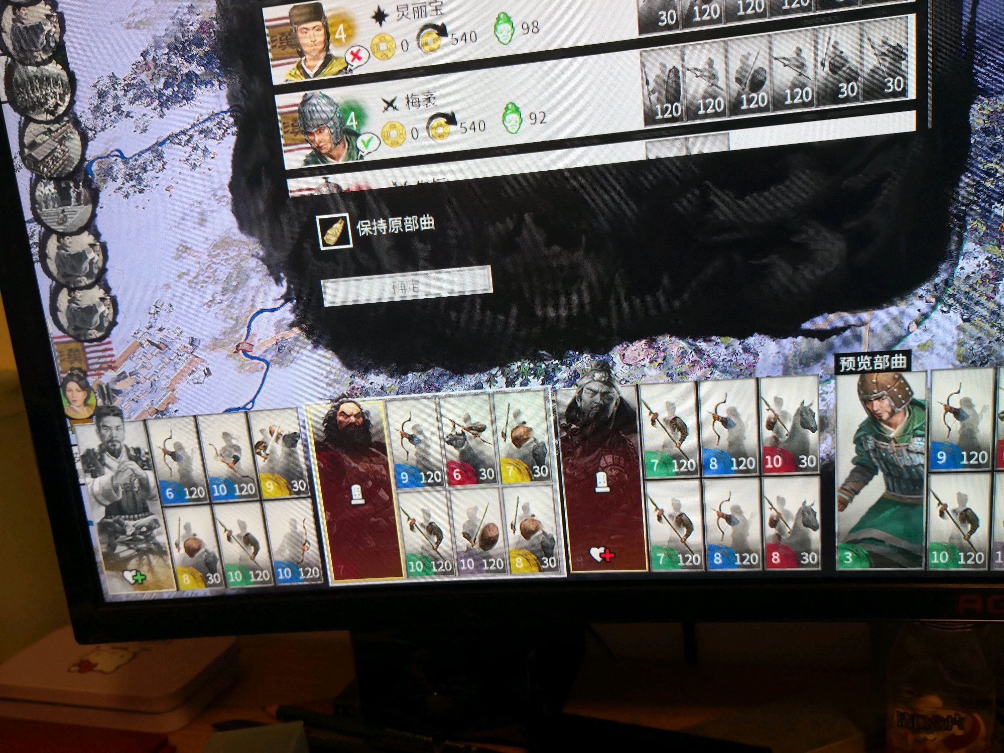 我赵云,夏侯渊,孙策在南边打汉帝国的城,我有一套装,农民兵减百分之25维护费,加上刘备的百分之50,百分之75.....全部补满农民盾和矛,才200多维护费,关羽是主力队伍,带的高级兵,稍微贵点。