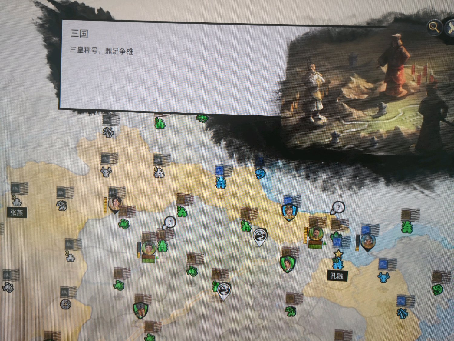 起手直接灭黄巾,过河就是灭袁绍,7回合好像,打下东郡的时候,联姻刘岱,因为前期双土系储君发展快,17回合灭了袁绍。一直打到35回合 卖了2个城,才和平了,真的太伤了。四面楚歌,我想要公孙瓒的马场,下回合可以交换了,外交点够了。