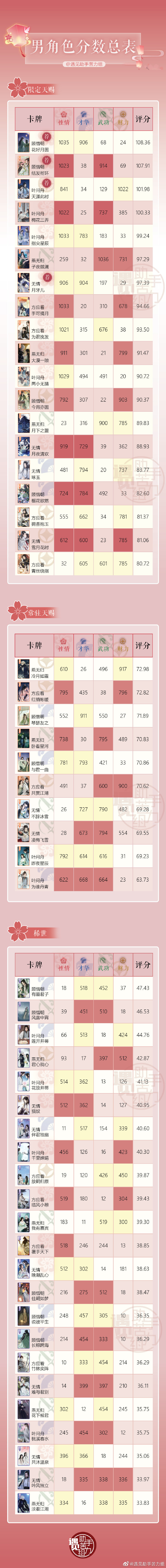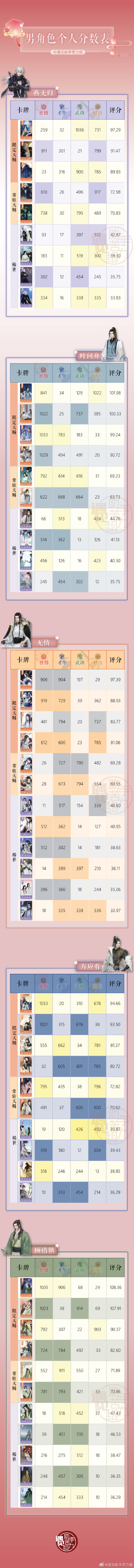 ②本表按初始值计算,因为同等级卡牌后续成长后,符合评分规律。