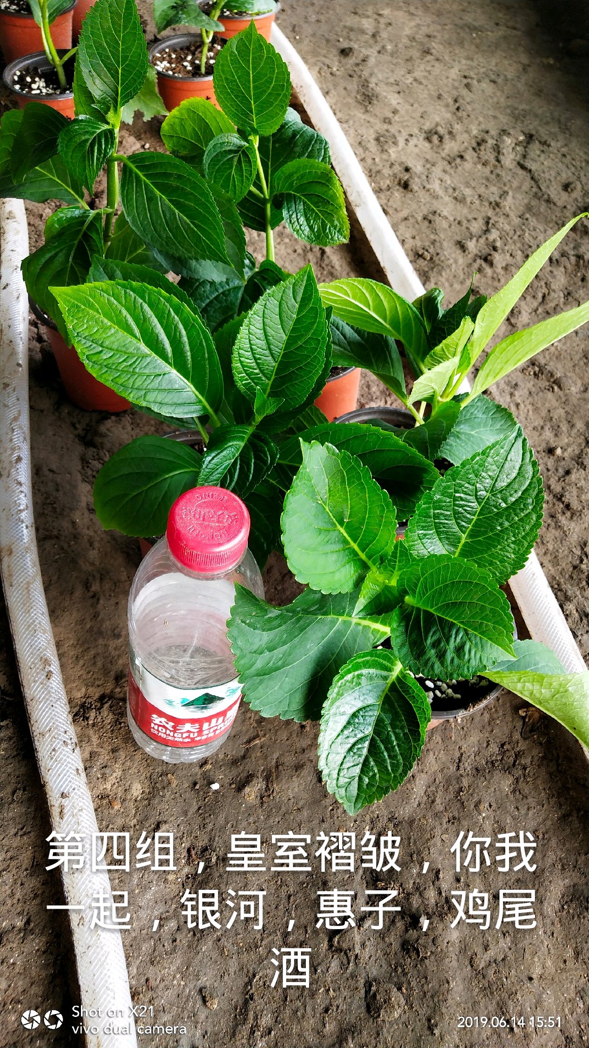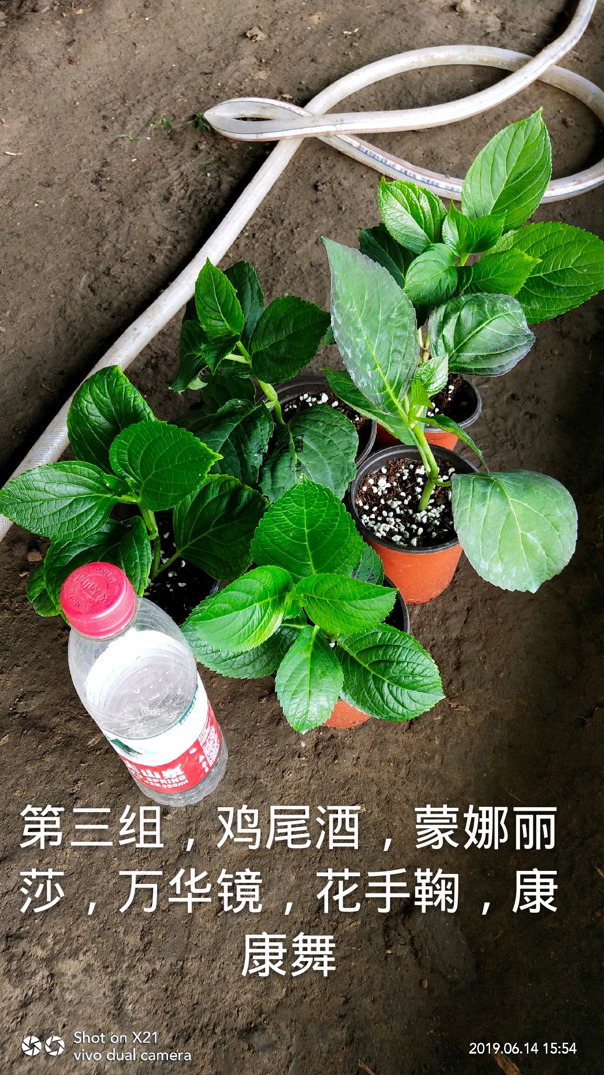 山东青岛,19.6.13出10㎝双色盆绣球小苗5组,每组65包邮,5个品种5颗,品种名字在图片下方,请大家多多关照。