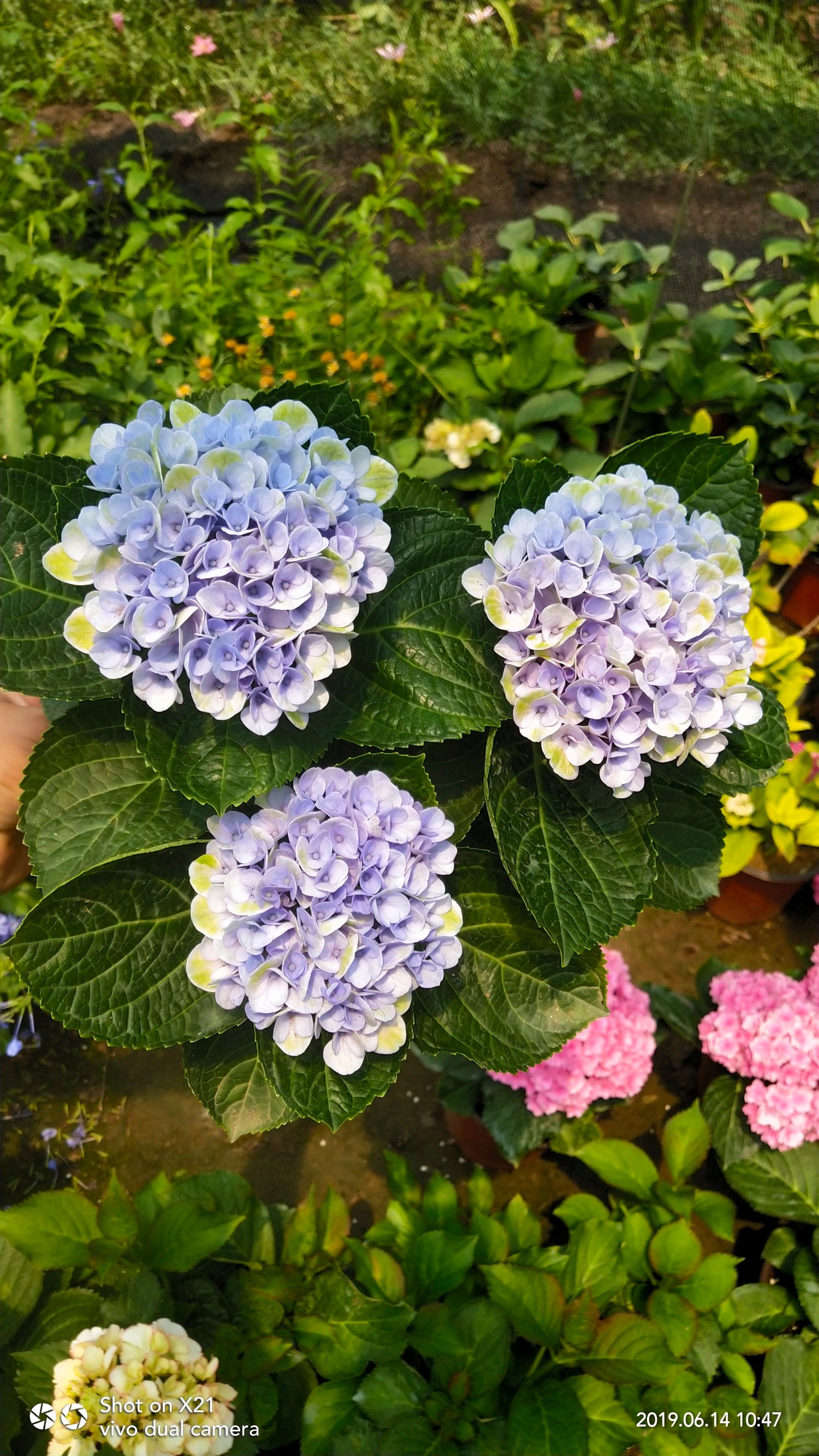 山东青岛,19.6.13出10㎝双色盆绣球小苗5组,每组65