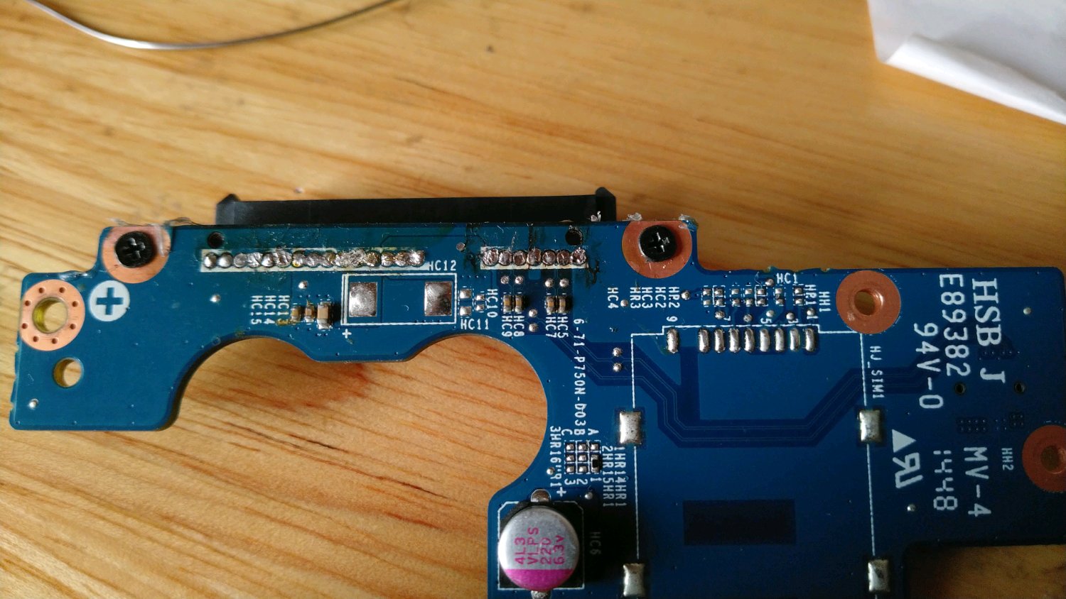 把c面拆掉,拿出sata小板(这步忘了拍照的。但你要是连这都不会,接下来的步骤应该也做不来),然后把上面的sata接口焊下来(请不要吐槽我的焊功)。要注意的是小板的均热效果很好,想把锡清干净有点难度。
