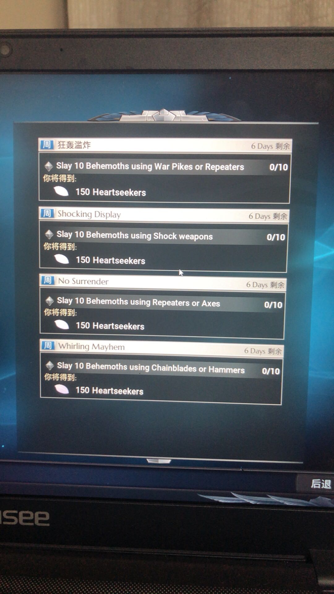 都是杀十个怪我分别用枪矛/枪斧/锤链/电系武器