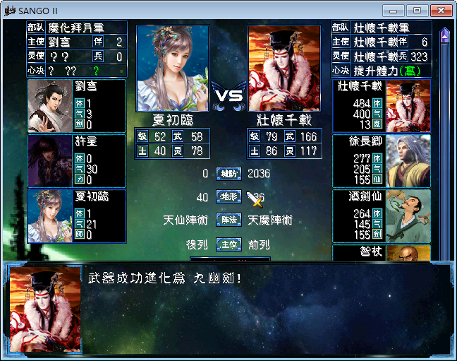 选的替换灵儿隐藏,武器是逍遥的(但是好像不触发隐藏),自定武将技(军师计应该是大师安排的)。打了半天才发现,其实前期疯狂刷等级就好,绝对无敌,我还辛辛苦苦收人慢慢刷来着。