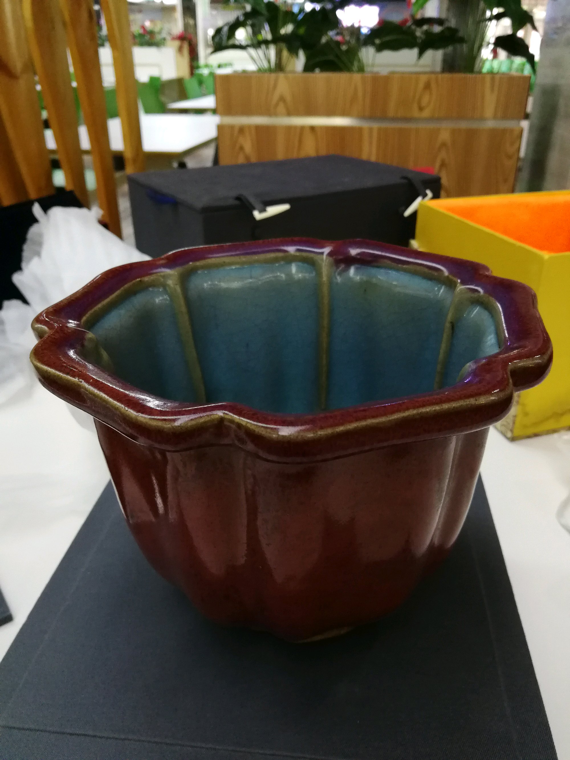 一个钧瓷花盆,随评。。。