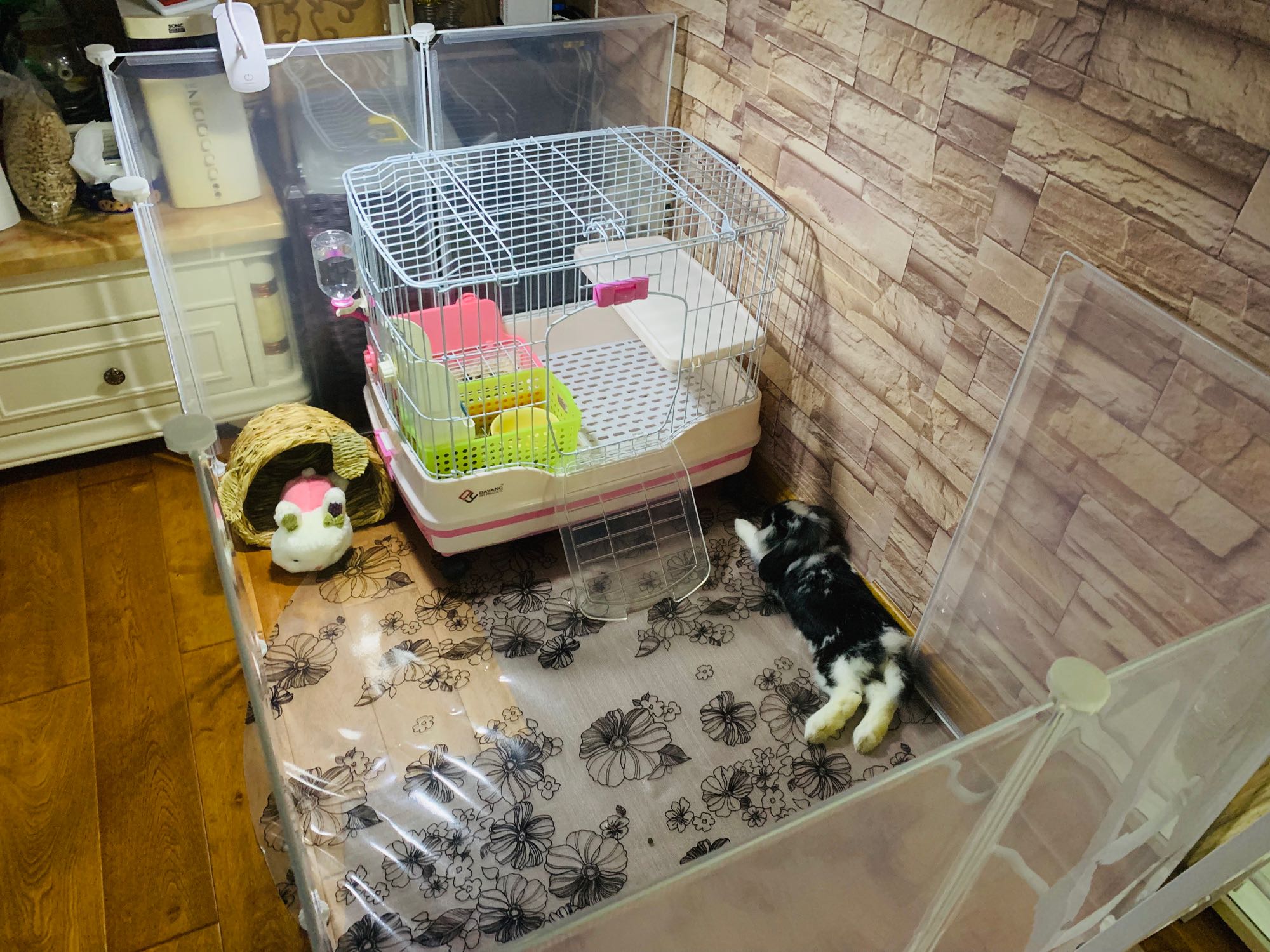 水么,喝一个正常量就好,比如2kg兔子每日最少喝200ml,喝300-400ml就挺合适的,有的一天喝800ml,拉尿也多啊,那尿盆才能盛多少ml尿?一天得倒三次对吧。夏天味道也很浓。