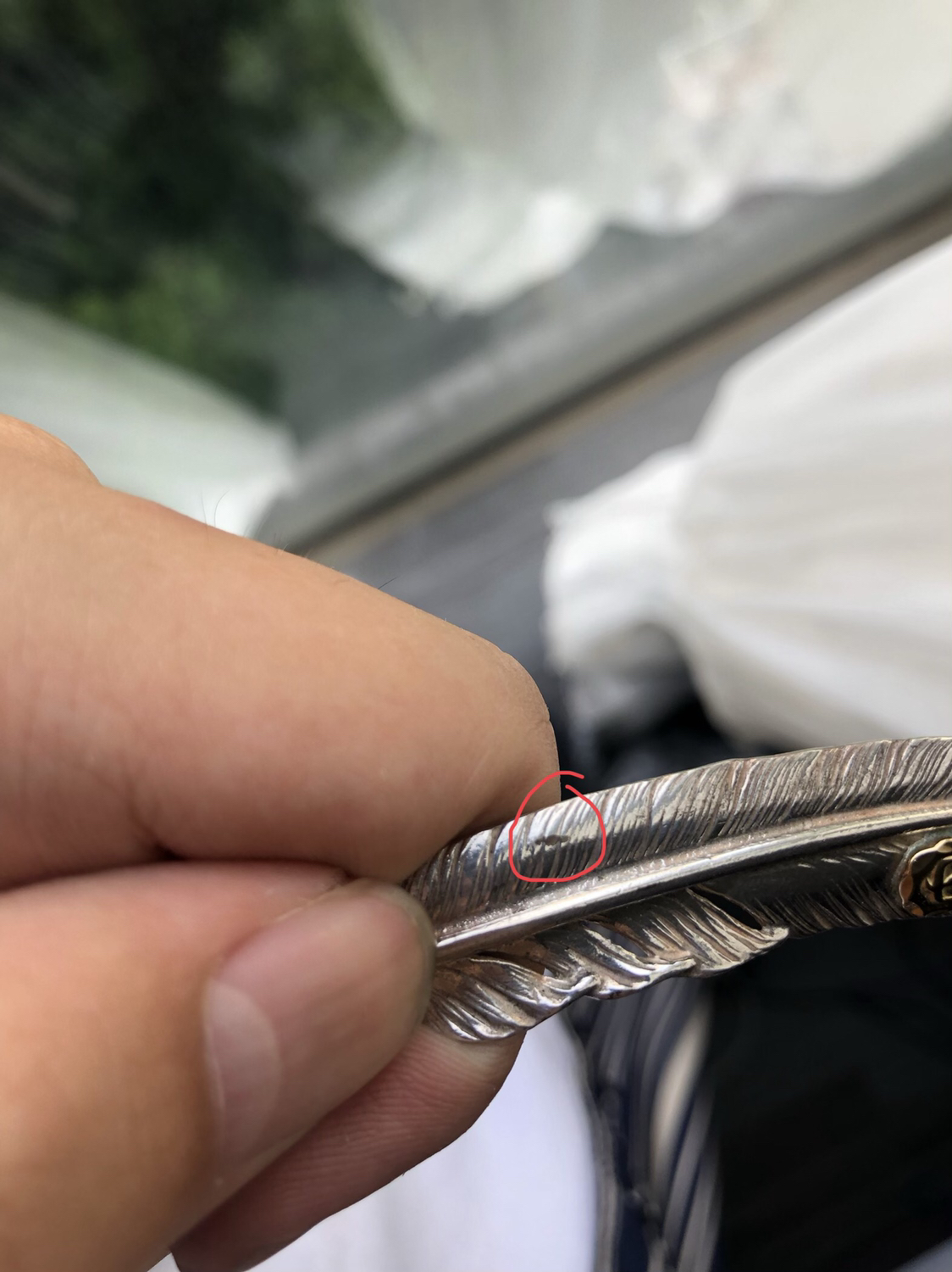 也不像磕碰的没有凹进去就在表面