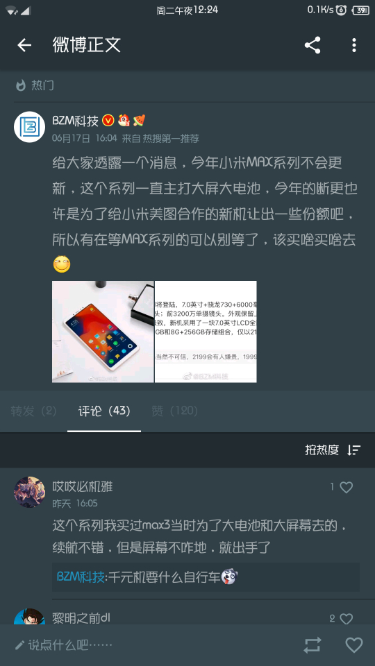 今天微博那个消息就是我问的,可是结果MAX4没有了。大屏大电池+MIUI个人认为很赞啊,小米市场调研太迷糊了。