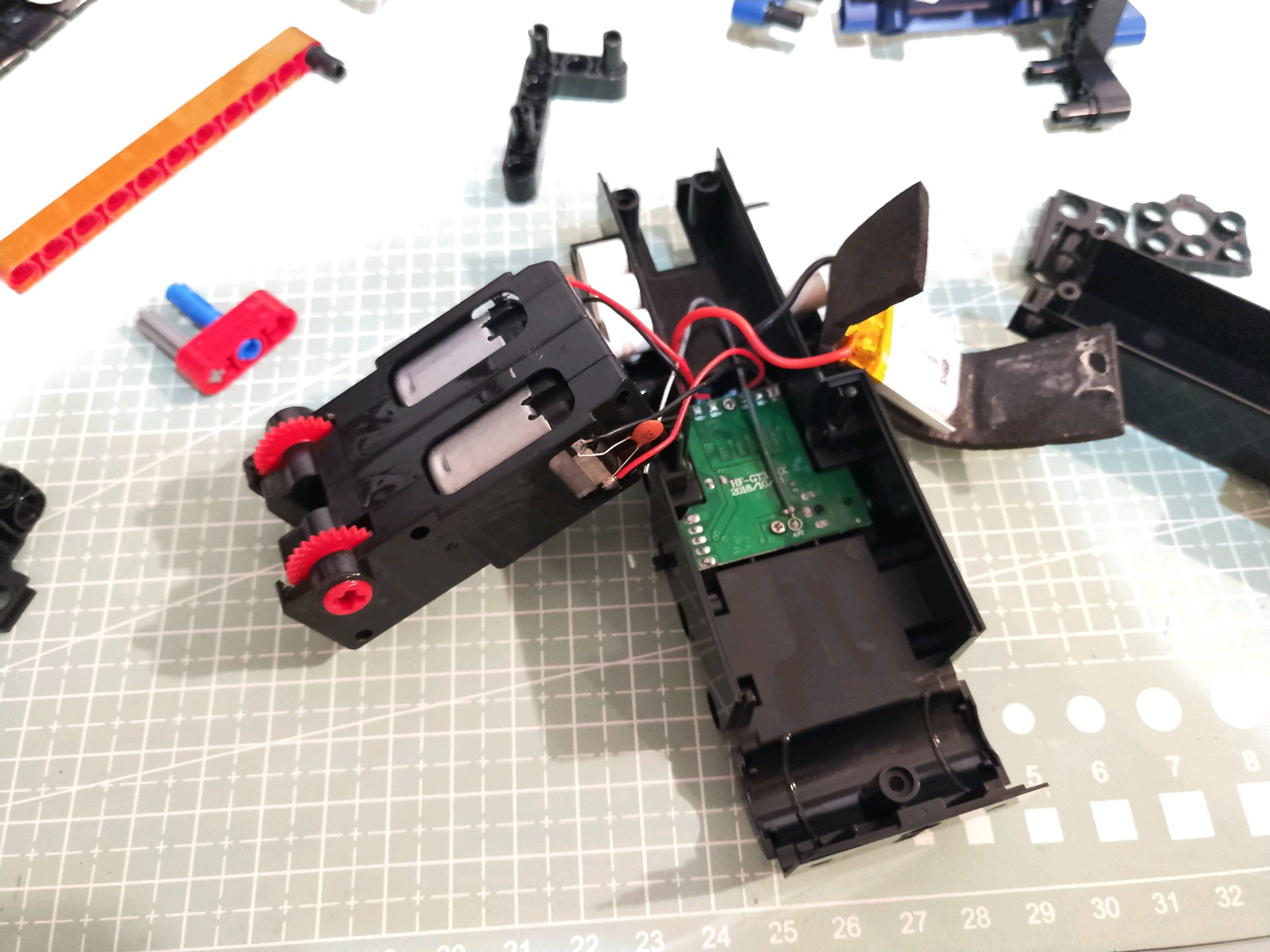 这款还好些,毕竟还有避震和一组齿轮传动机构。因为有不少低龄玩家,属于拼好就当个遥控车玩了,一般不会再拆掉了。