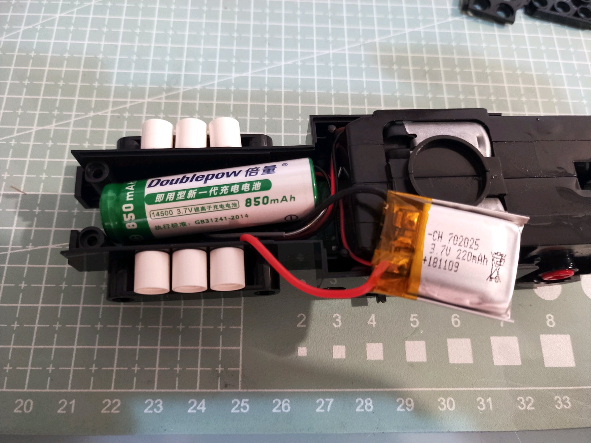 位置正好能放一节14500锂电进去,我准备把这220毫安的坑爹锂电关掉。。。