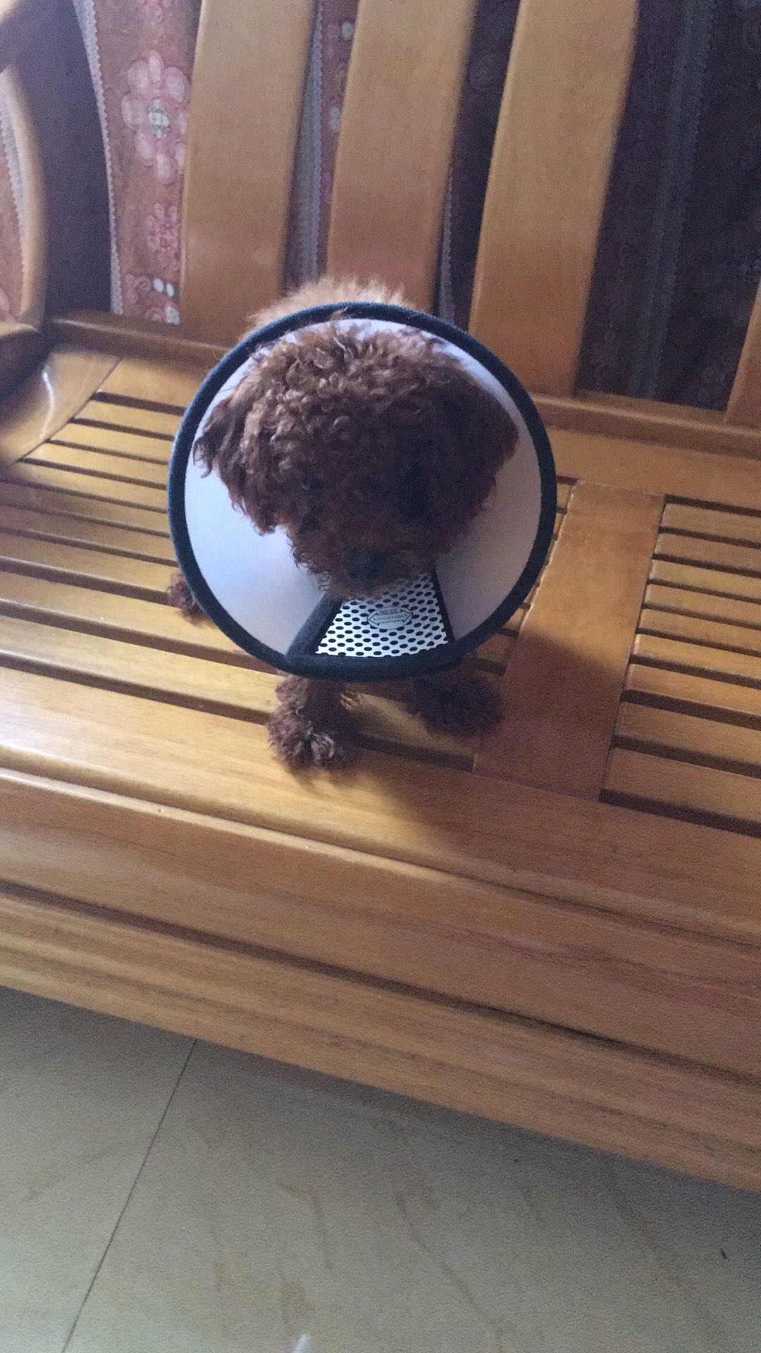 狗狗耳背有一处皮肤真菌感染,买了贝肤清给她喷,然后给她戴个圈