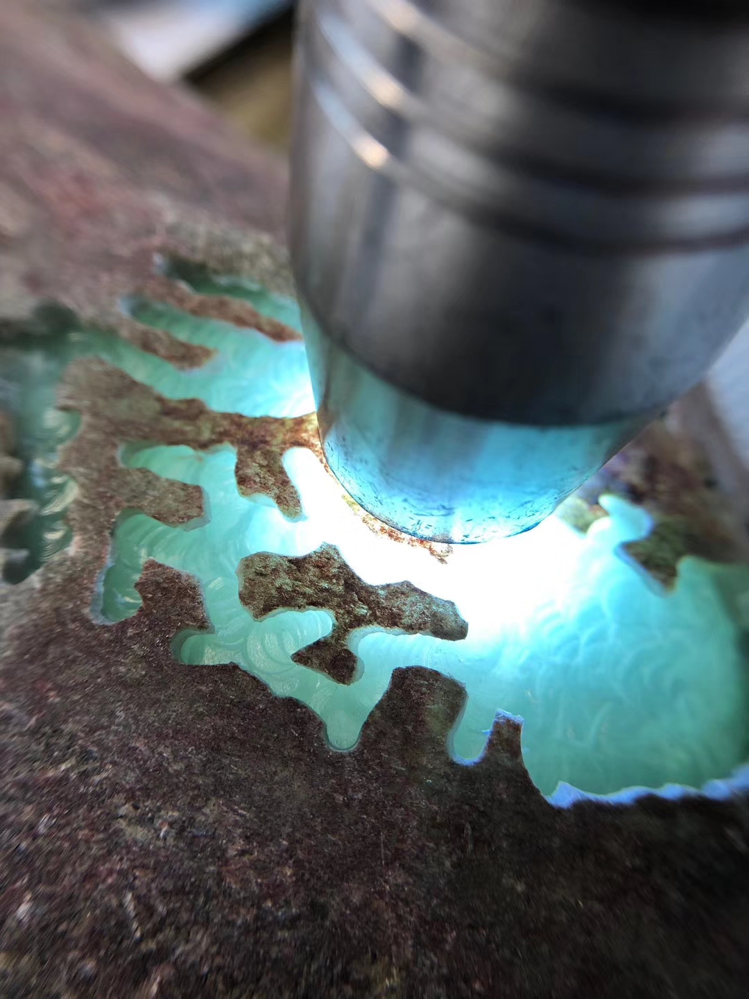 木纳杨梅皮开窗化冰晴底 种非常老 底子干净 肉相当细 开出了
