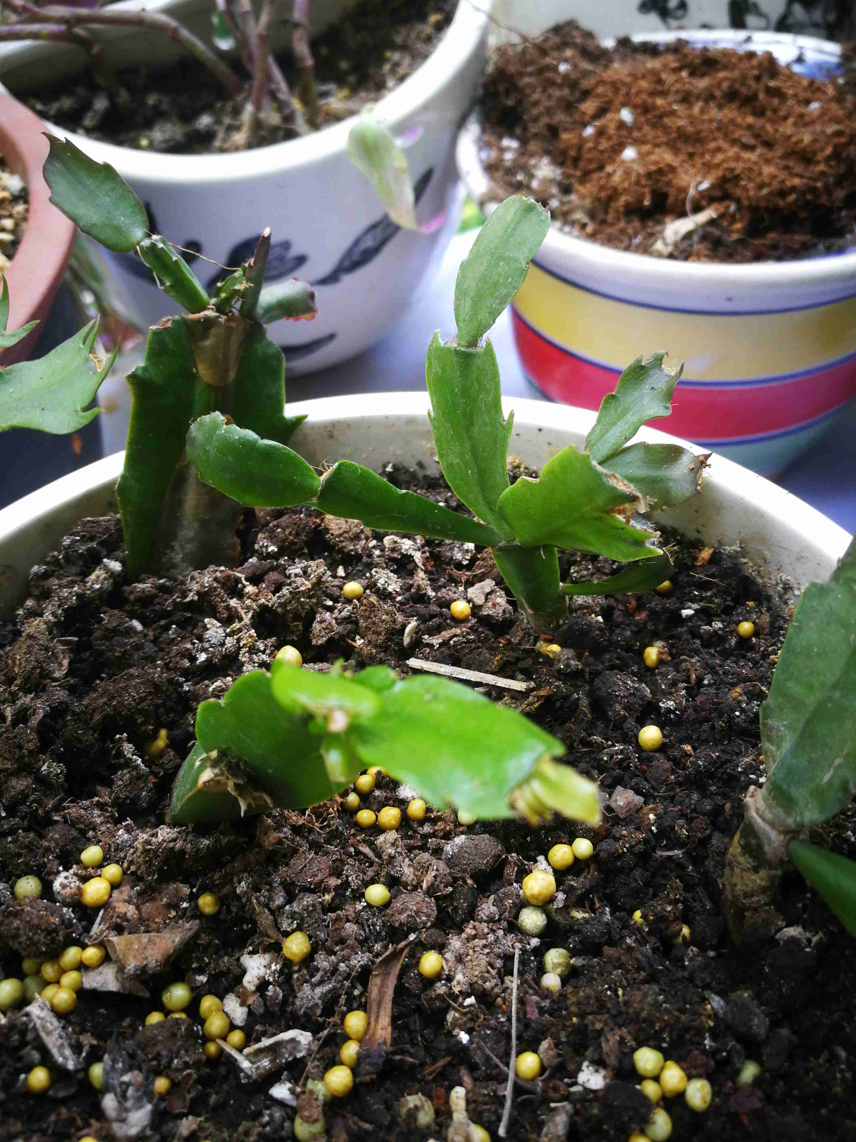 用的一年生三角,也不长,切几段嫁接,以前一直没根部,还曾经一度萎缩,从嫁接口上依然能看出,后来长根了 ,叶片厚了不少
