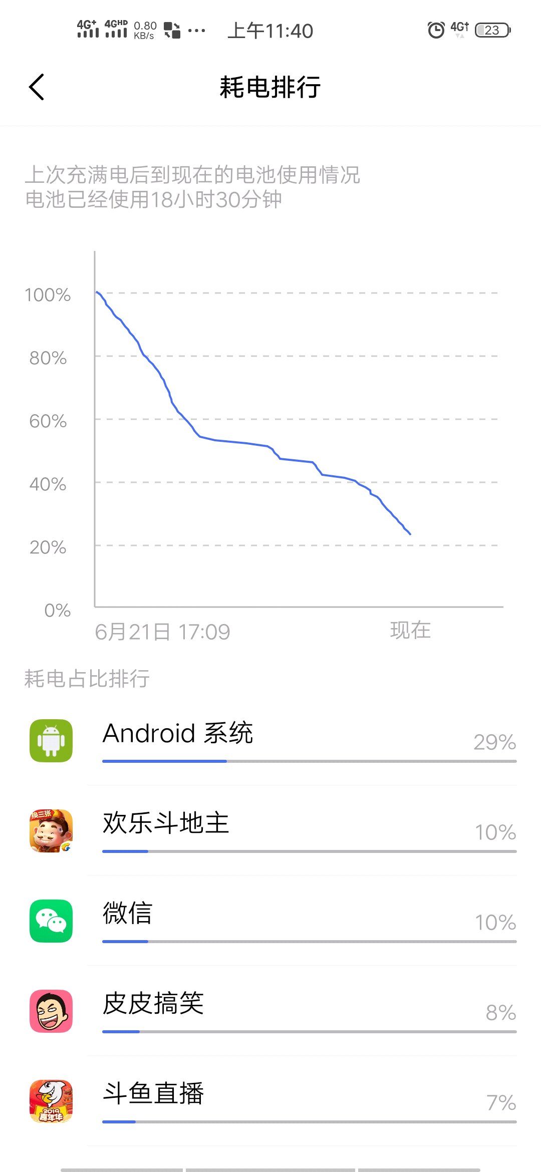今天轻度使用,感觉没用想象的那么强,还有我都没咋用qq,怎么耗电最高