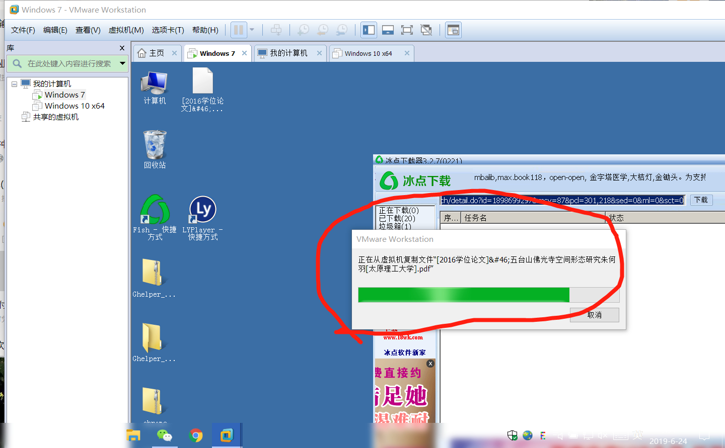 现状:无论是复制文件到虚拟机还是从虚拟机把文件复制出来,都是进度条卡住。但vmware本身仍然可以操作。查看本地任务管理器发现VMware Workstation VMX的cpu占用率40%,磁盘占用率0m/s(说明并没有在复制文件?)如图说明。