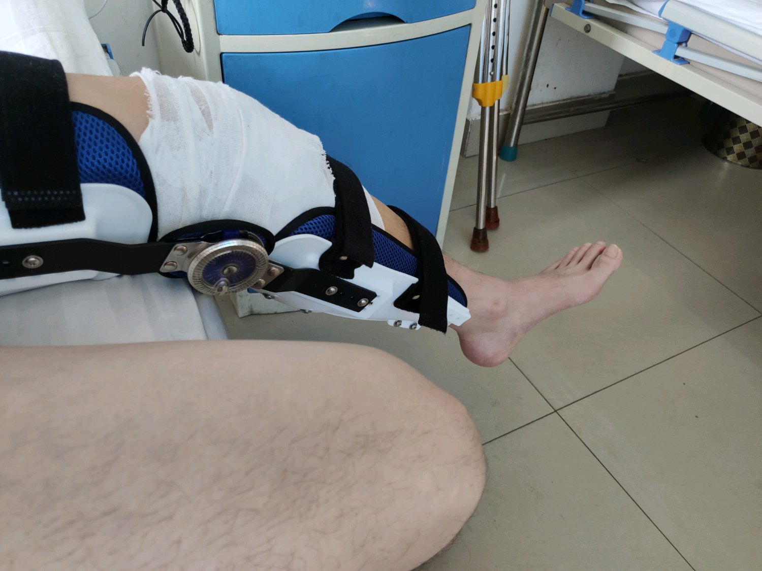 前叉重建 半月板2针 术后第七天 今天开始弯腿 第一次30° 轻松完成,就是有点疼,