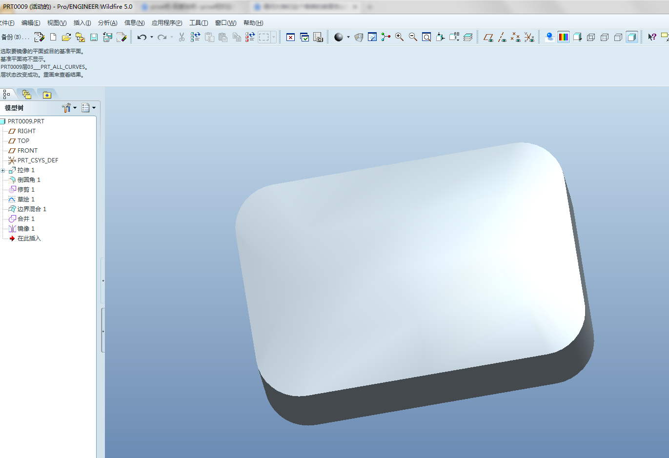 先草绘,把线条画出来,在用边界混合,最后合并,完工。