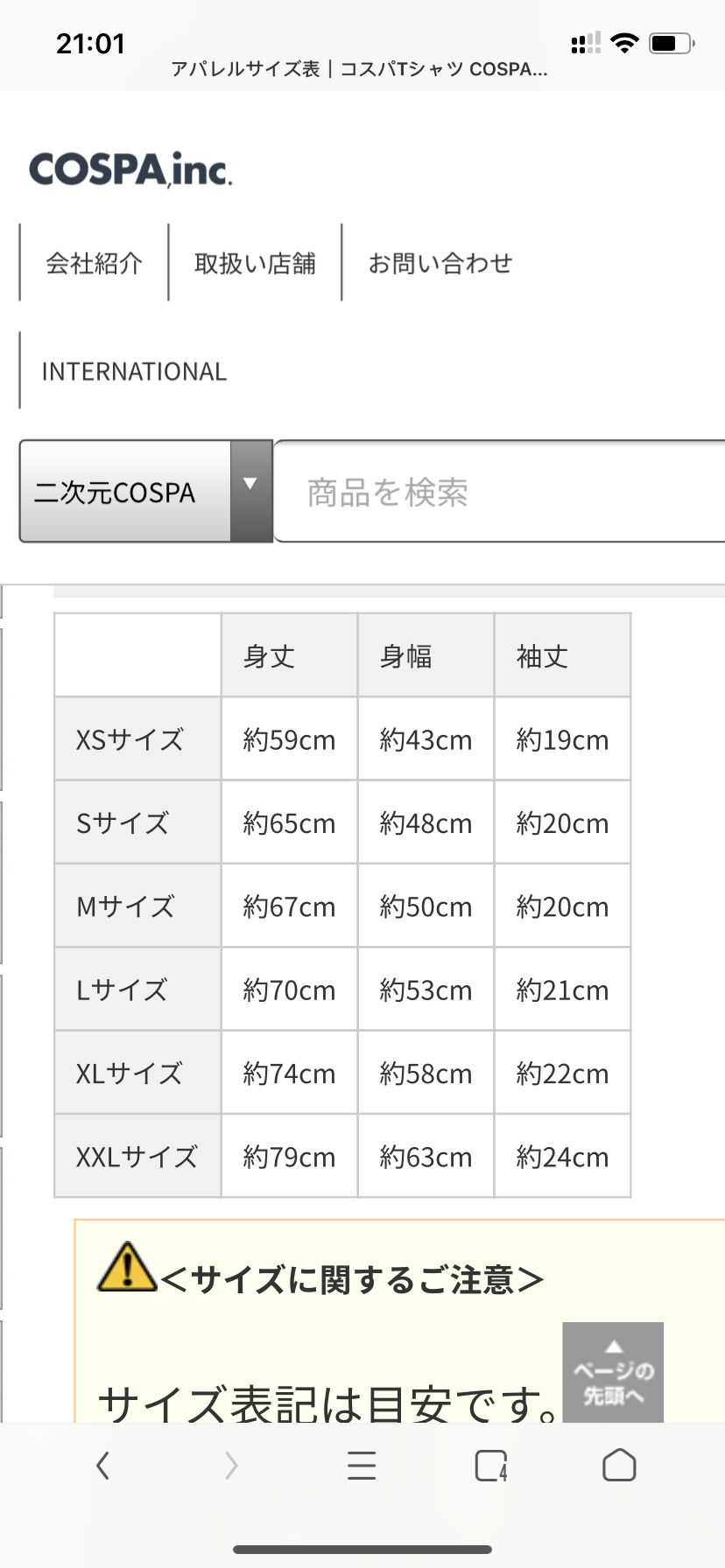 最近刚刚知道了cospa这个坑˭̡̞(◞⁎˃ᆺ˂)◞₎₎=͟͟͞͞˳准备入几件短袖(莫崽真可爱(੭ु ›ω‹ )੭ु⁾⁾♡),但是官网尺码只有“着丈”、“身幅”和“袖丈”的尺码,按照官网的图示,我量了下平时穿的短袖的“着丈”、“身幅”和“袖丈”分别为75、56、23。