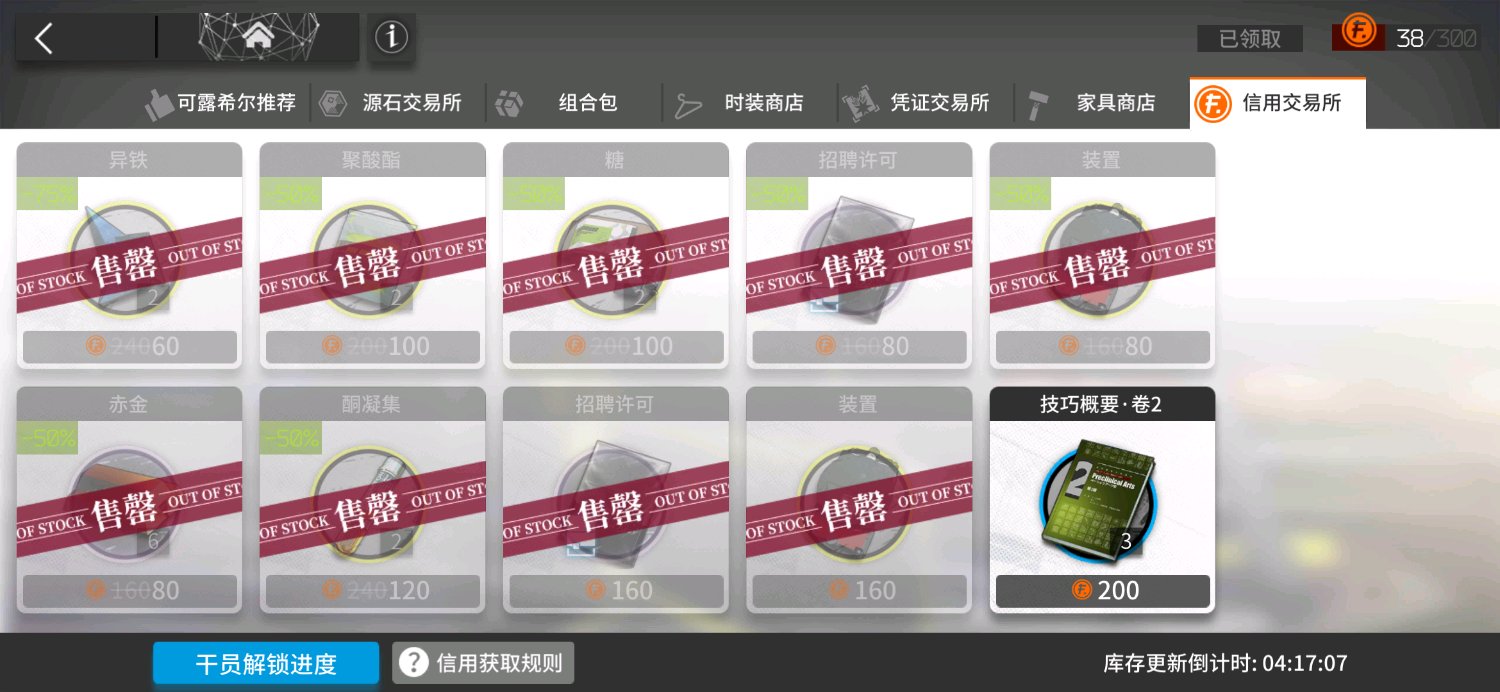 绿皮书-招聘合同-打折素材-加急-打折经验卡,最后还有个论外的东西99%off的3600龙门币