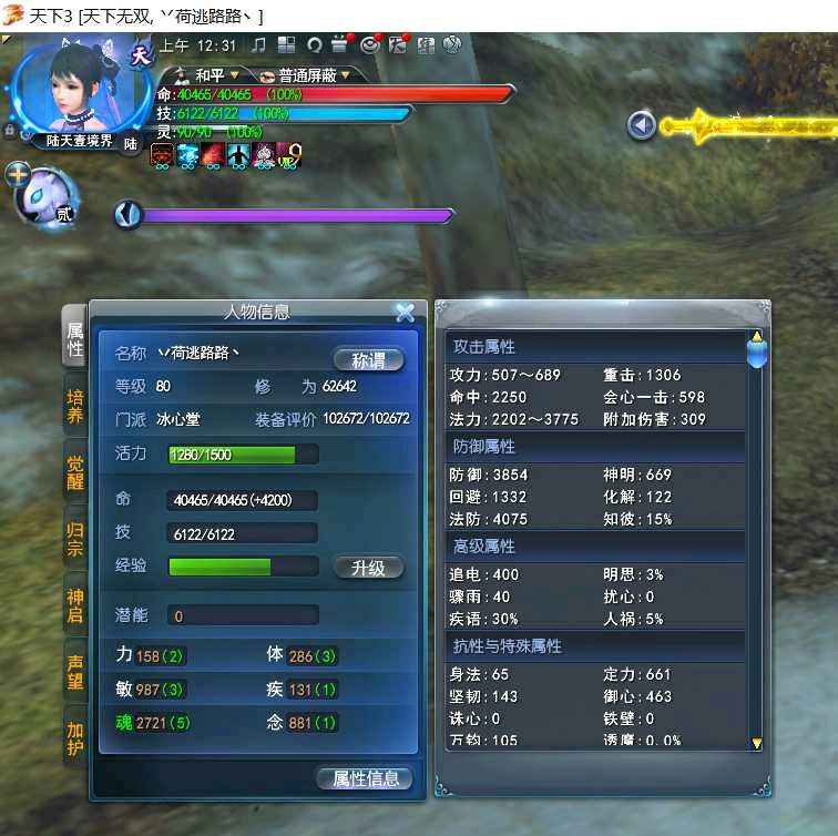 游戏带脉3900大功,1300重击,400/30双速,御心443,双防4000+,不让放榜写个id:荷逃路路,永久沧海飞狐大圣幺蛾子绝代岁月游园疏影鸢尾,除细雨外所有三期绝版,没有XZX,珠子单卖,心理价1.59,有意私聊给联系方式详谈。