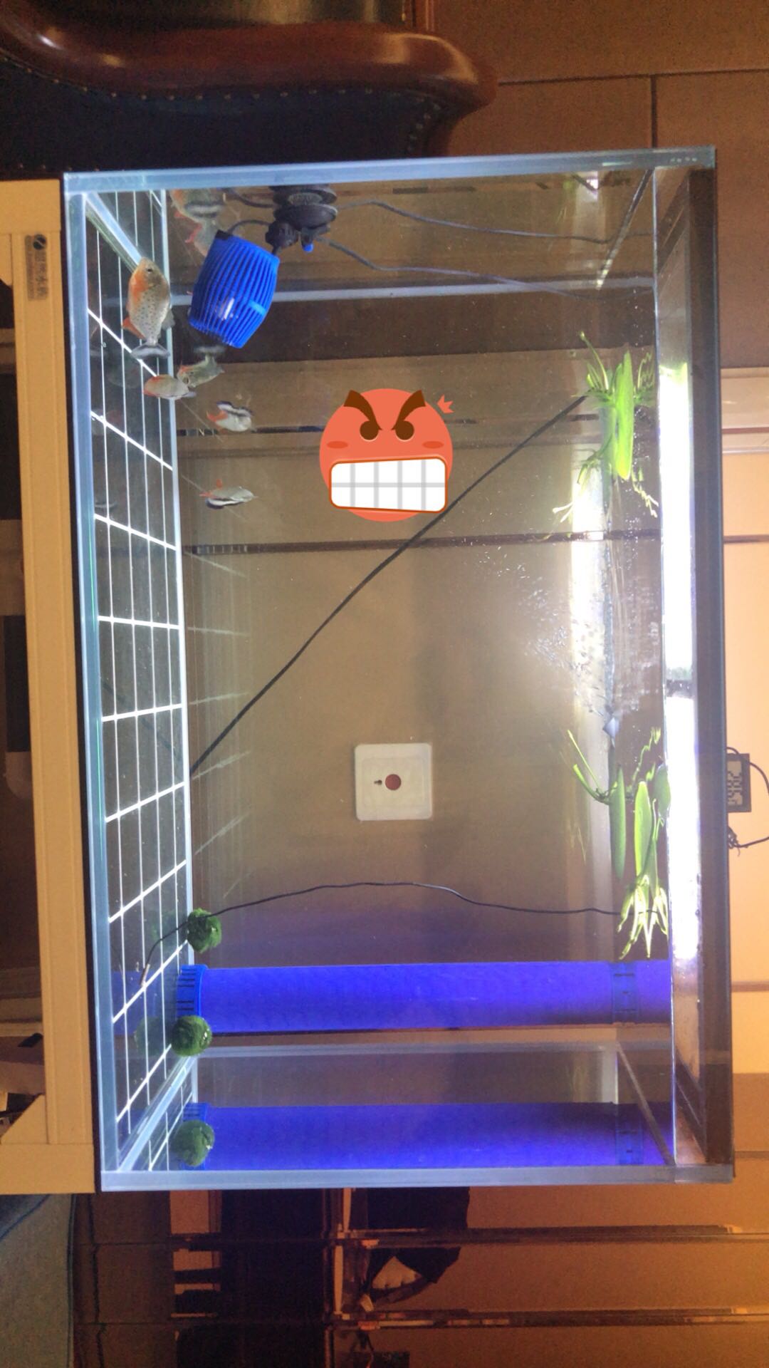 刚开缸,小缸的鱼看不过去,自杀8条,一个大缸就剩6条(忘记开过滤)