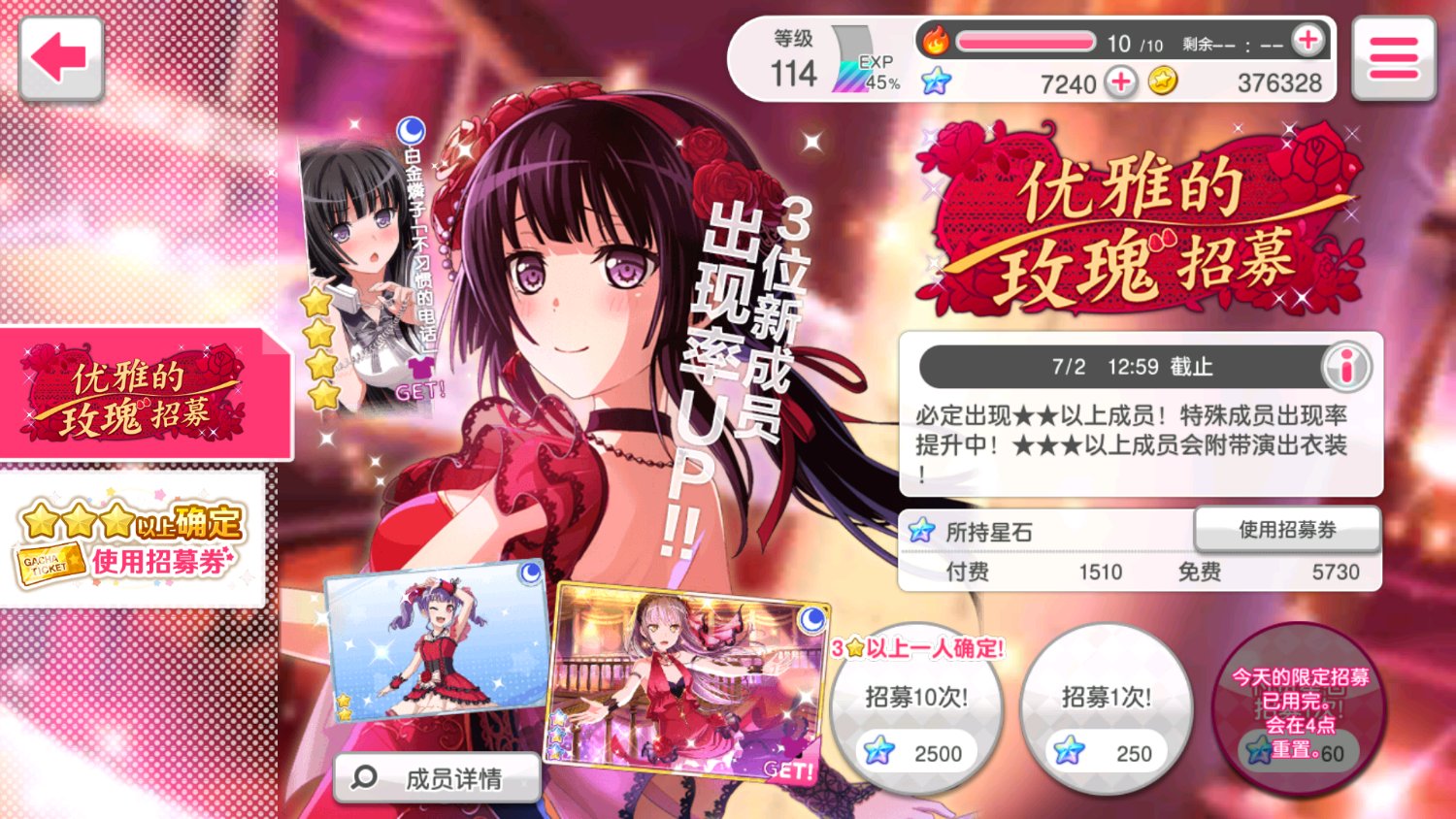 看的日服表,彩后面那期好像是花嫁的李美丽,限定,嗯…
