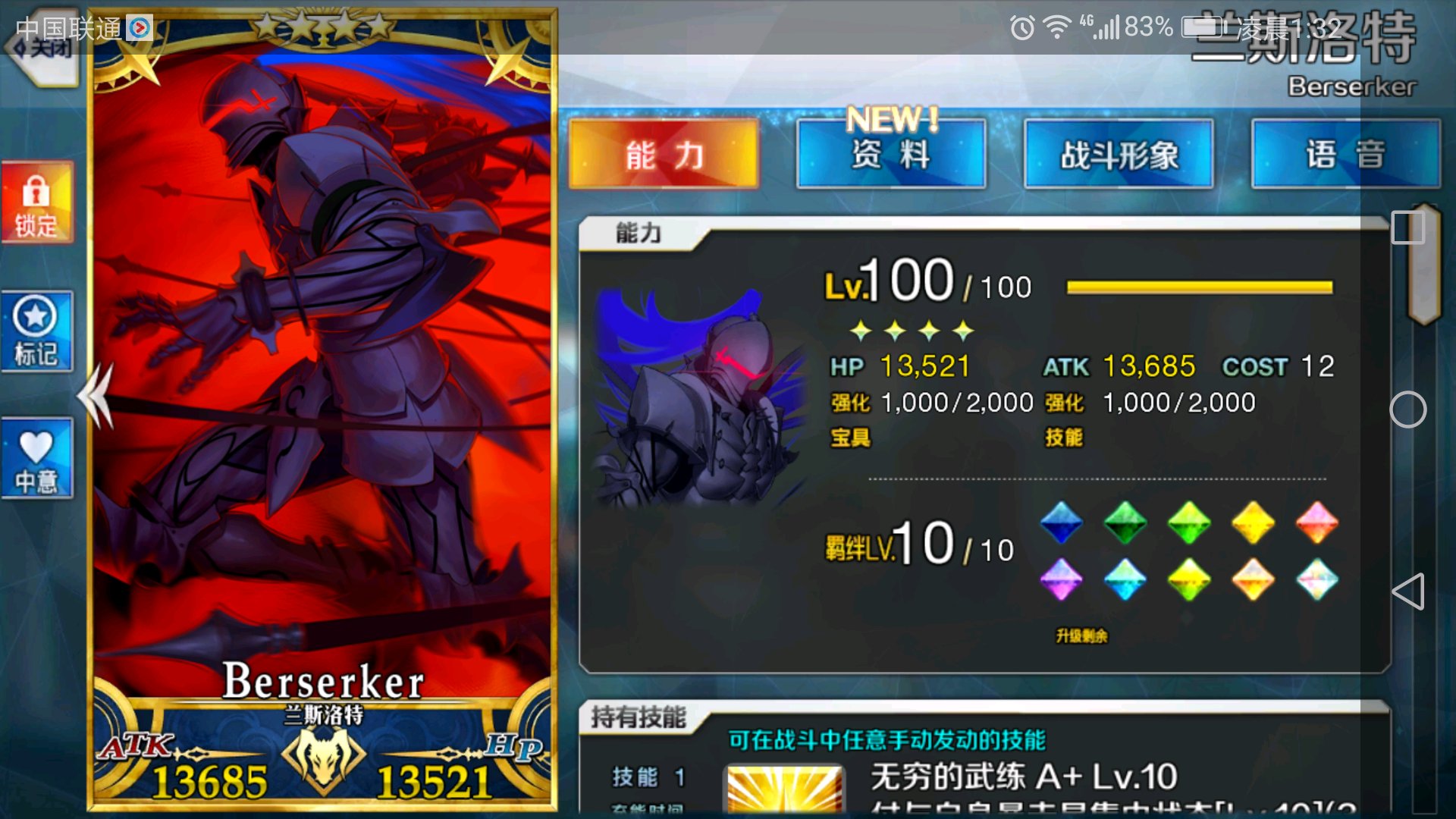 三技能推荐满,集星可以高点,打星随缘。有爱的话可以喂杯子,攻击还是挺高的