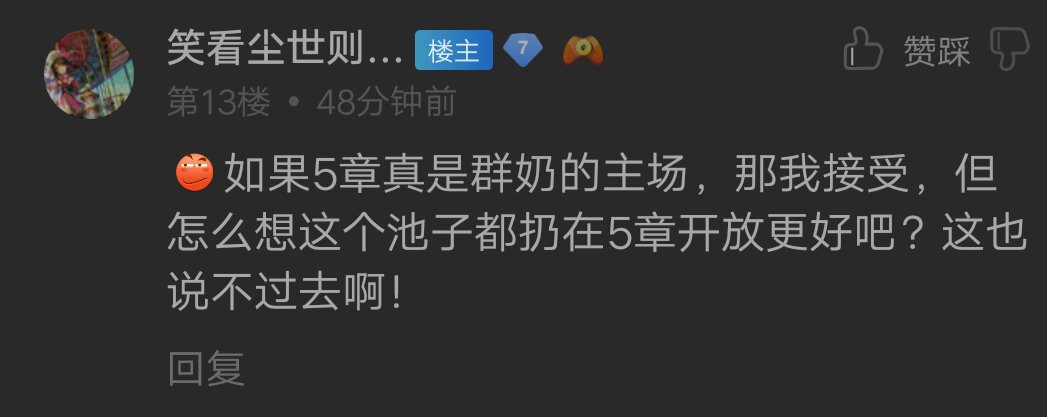如果5章真是群奶的主场,那我接受,但怎么想这个池子都扔在5章开放更好吧?这也说不过去啊!