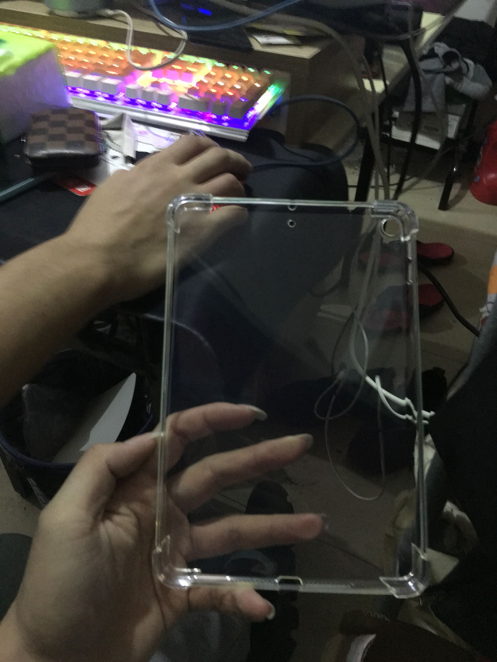 本来是翻盖的,但打游戏不方便,然后拼多多4块钱买了一个透明的壳子