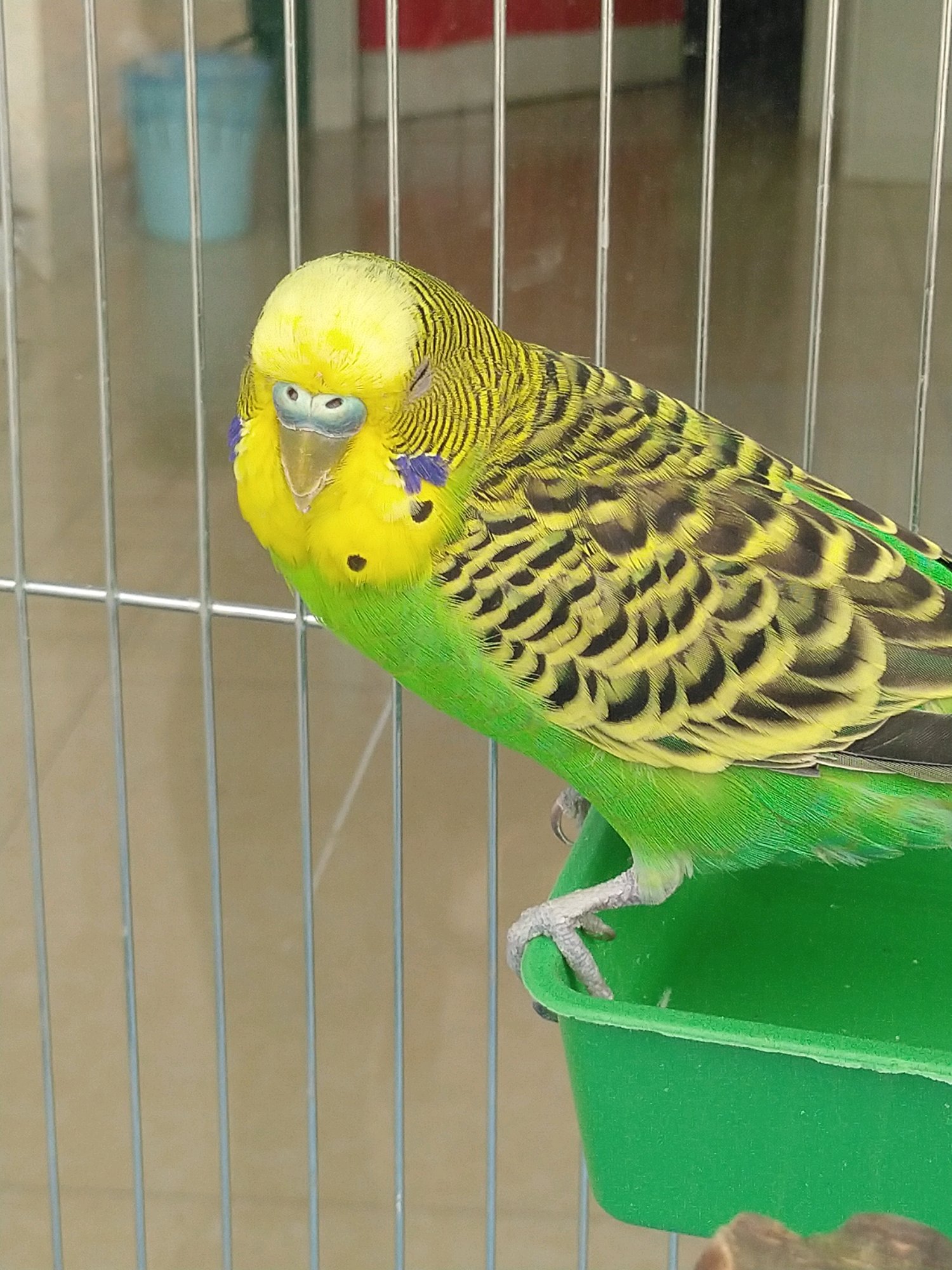 鸟已成年,戴帽了都,鼻子蓝色,是公