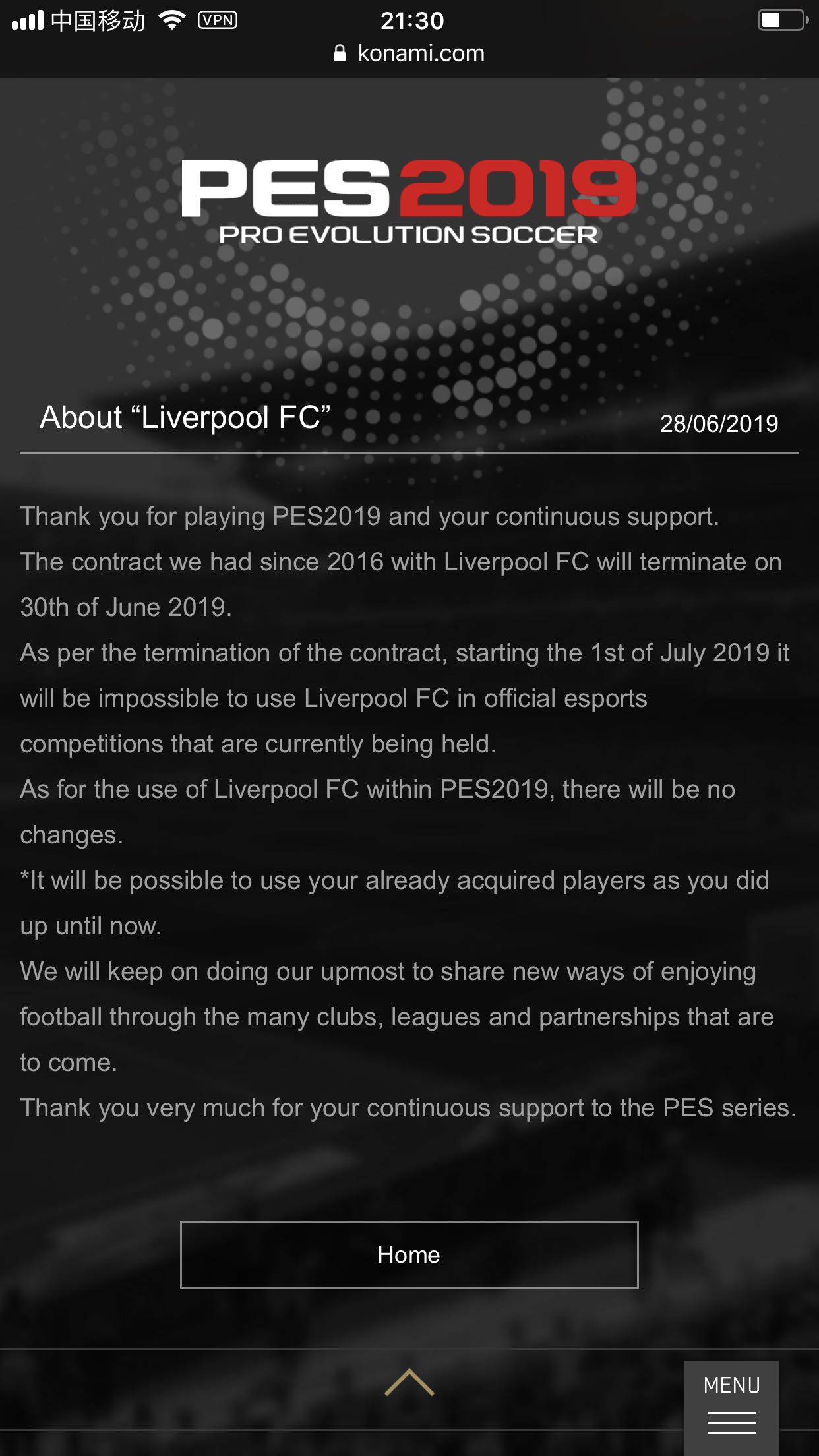 刚看到,官方公告吗?红军球员pes2019里是没问题的。
