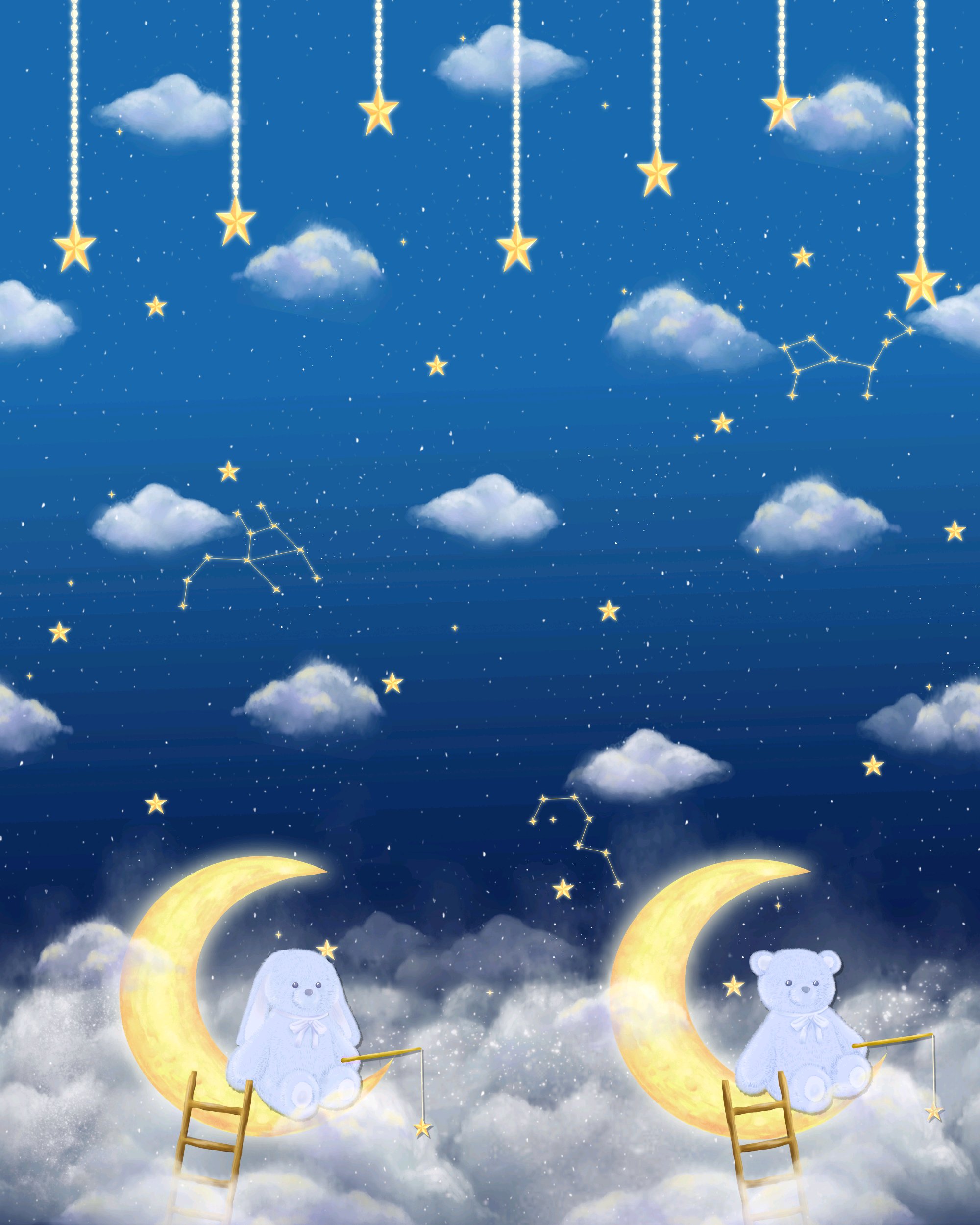 这样白色底然后整体元素全是蓝紫色调我画起来特别舒服