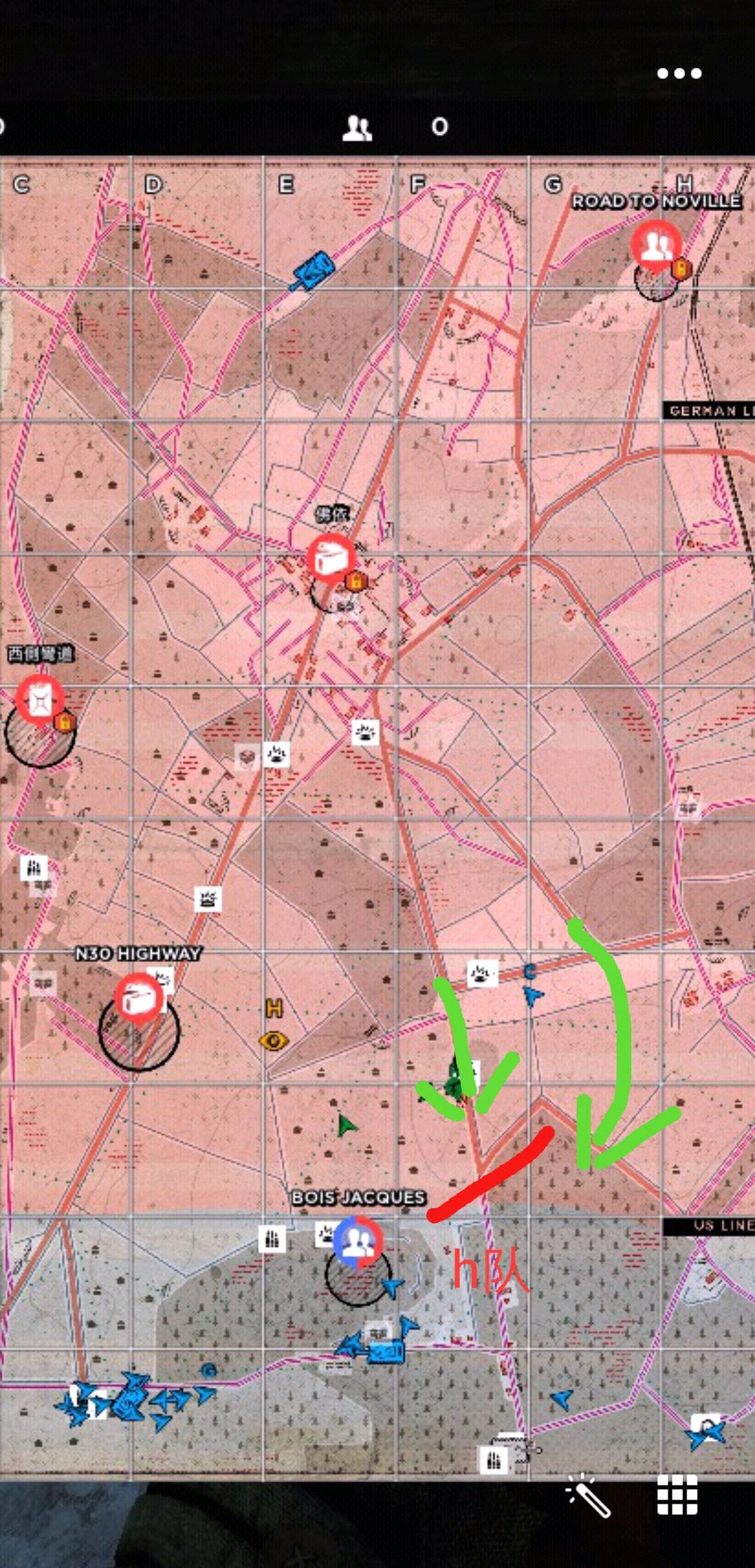 问题就在于队友全挤在进攻点前,真的是全在进攻点前,进也进不去,也不回防,可以说唯一的侧翼就是我们的h队了,所以被喷了以后我就很生气明明我们做了这么大的贡献,还要被骂?就是说根本没有队友关注自己的侧翼,当然在第一阶段最艰难的时候有几个其他队的队员加入了我们的战斗,真的非常感谢