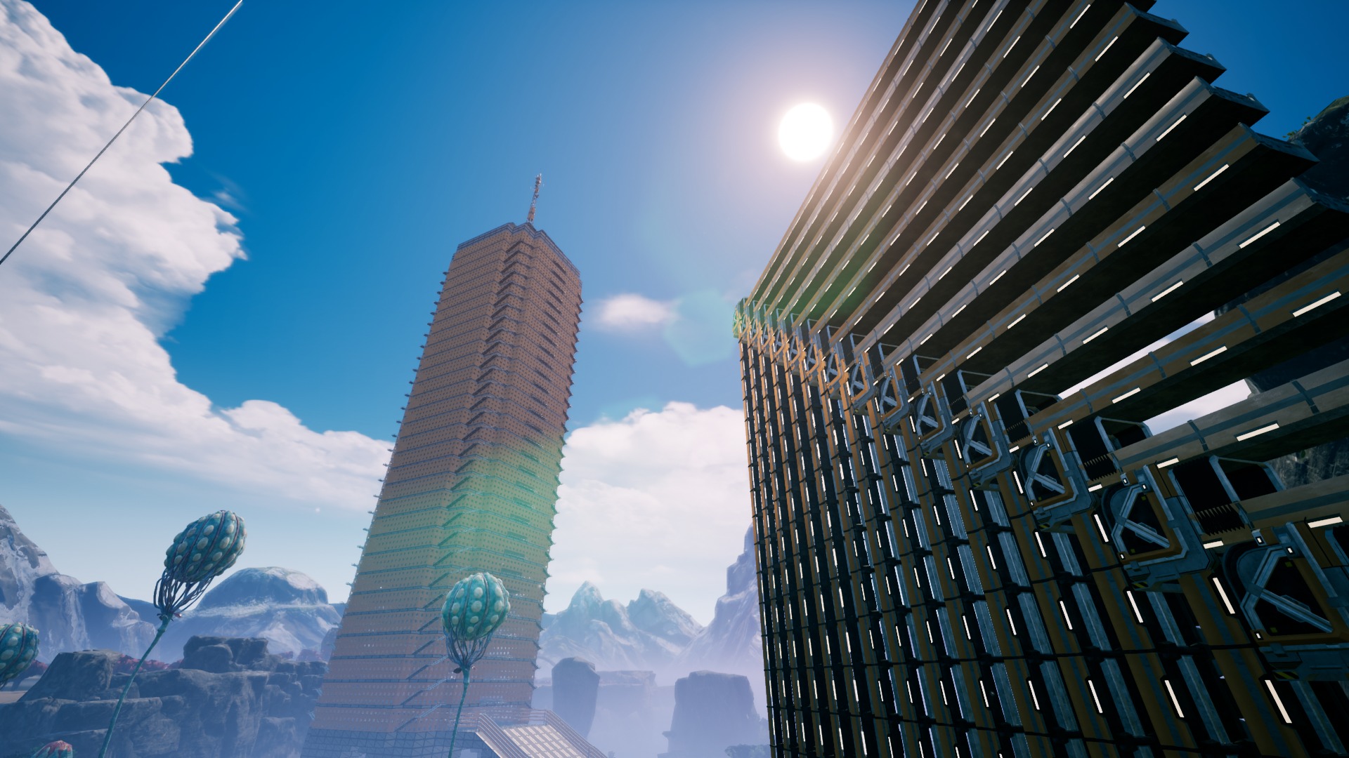 感觉只有布置的紧凑才会有挑战性,我的大厦每层是15*15,4个角个少5块地基,中间留3*3的空。原料、半成品都是从另外两个厂区运来,所以能在一层中实现涡轮增压电机*1制造器不间断运行,5级传送带的材料硬铝板也有盈余。因为是边做边规划的,所以不完美,用了3个 电力碎片,再优化一下还有足够空间做到不使用超频。