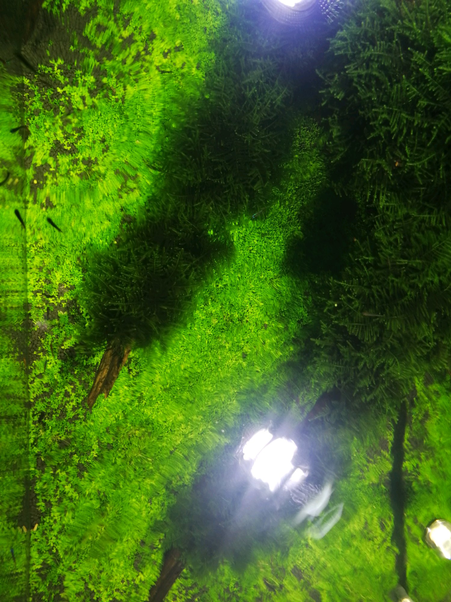 我今年4月份开的缸,现在水温28℃,开灯一天7小时,二氧化碳一秒一泡,现在发现摩丝根部发黑,趴地生长缓慢,且有部分颜色发黄!求各位吧友知道,如何把水草的状态养出来!!!