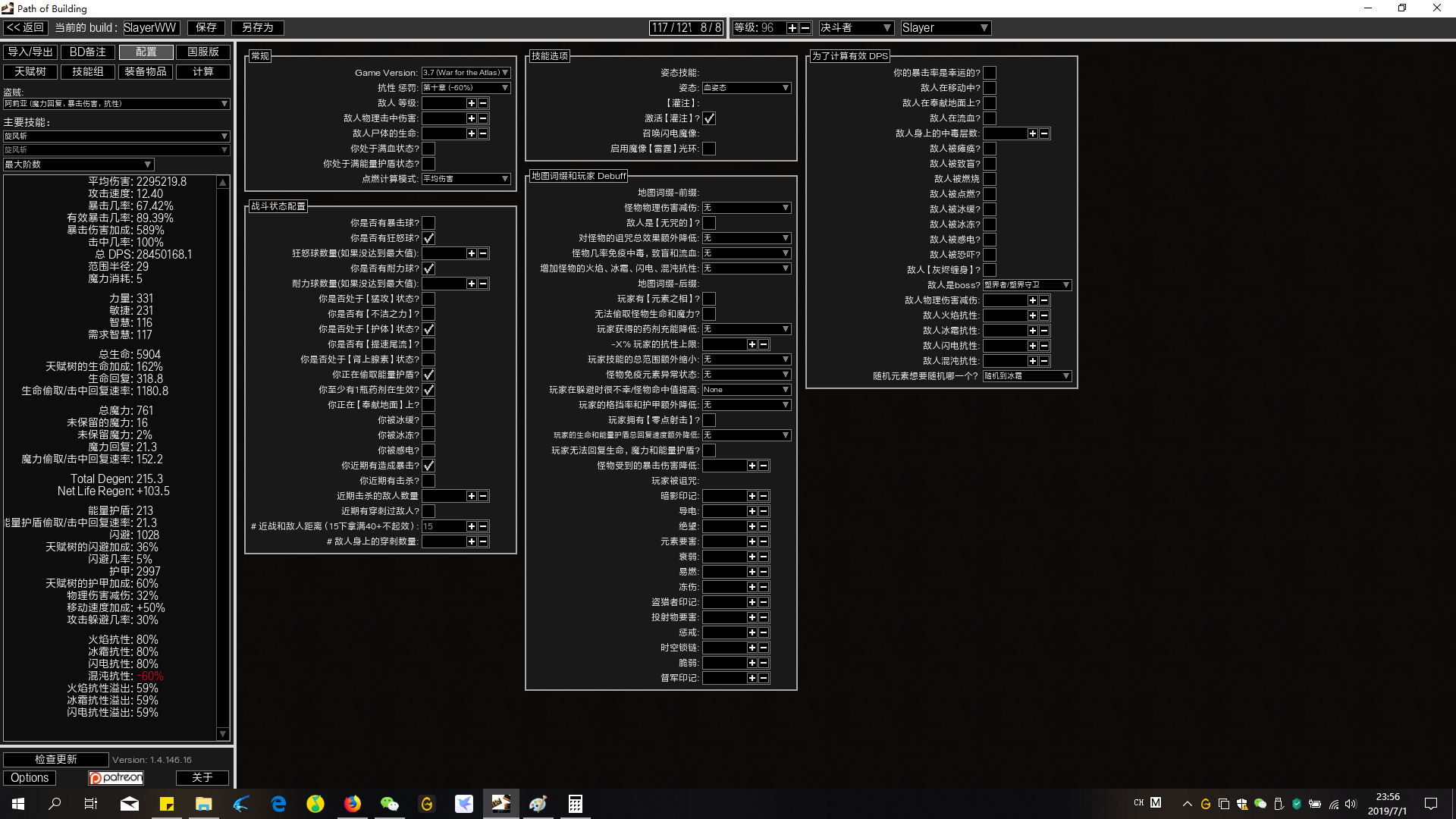 额,你的回帖怎么被删了,看到回复提醒里面你还发了很多图正想看看你的pob呢,对了我猜你pob里面可能把boss感电勾选了,实际上旋风斩打18感电效果很难到50%。